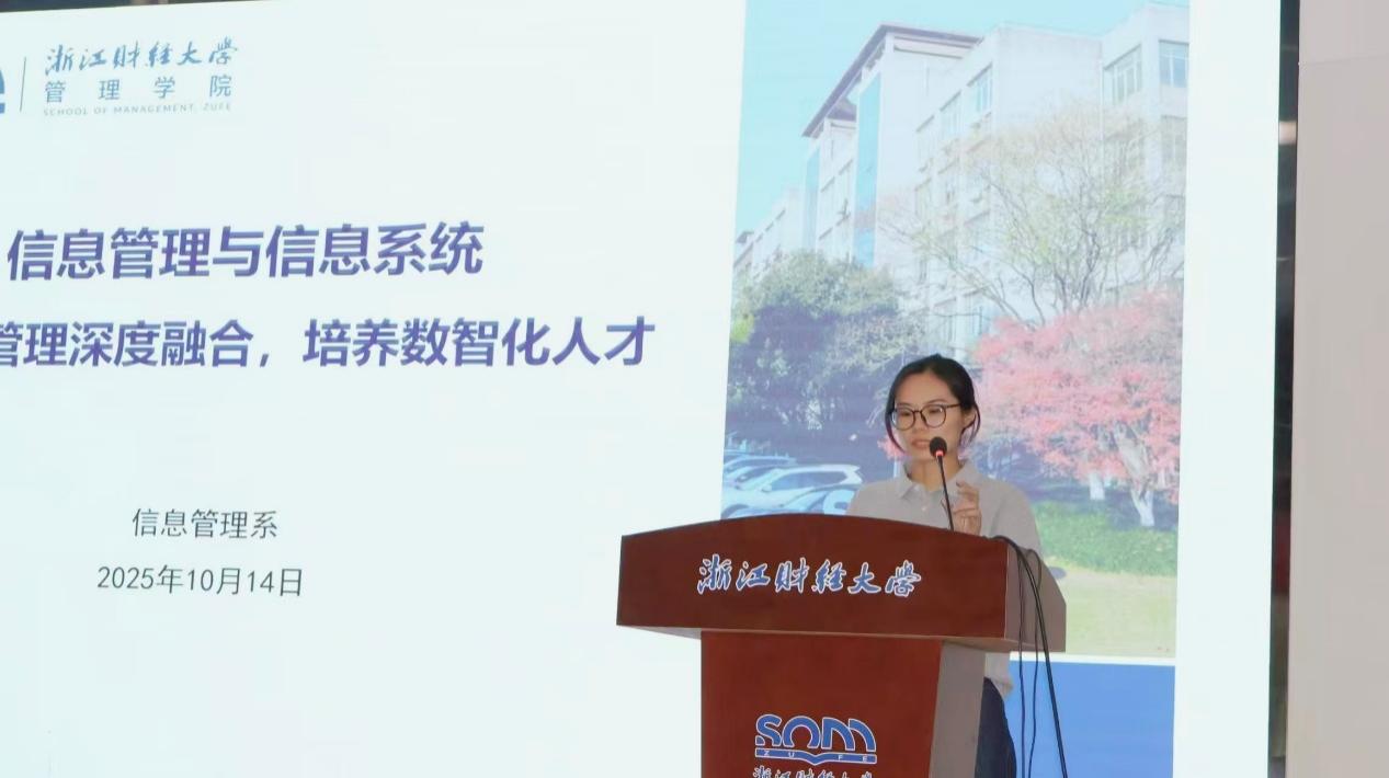 之后企业管理系主任赵昶、市场营销系主任(中外合作办学方向负责人)陈颖、人力资源管理系主任张维维、供应链管理系主任李晓超、电子商务系主任王鲁、信息管理系主任王婉茹分别以“数字创新与智能运营领域的中流砥柱型人才”“数智时代市场营销专业人才培养模式”“人力专业的知识图谱和职业路径”“面向数智化未来的供应链管理专业”“数字时代卓越管理商务型人才培养”“技术与管理深度融合的数智化人才培养”为题带来精彩纷呈的专业导览与特色介绍。