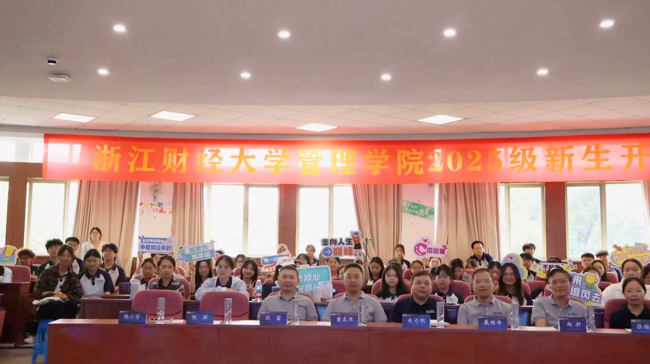 院长董直庆以“商学十问”为全体新生带来一场思想深刻、意义深远的“新生第一课”。党委书记朱力明、副院长张雷、副院长戴维奇、各系主任、新生班主任代表、新生带班辅导员以及25级全体新生参加,活动由学院党委副书记、纪委书记陈小芳主持。