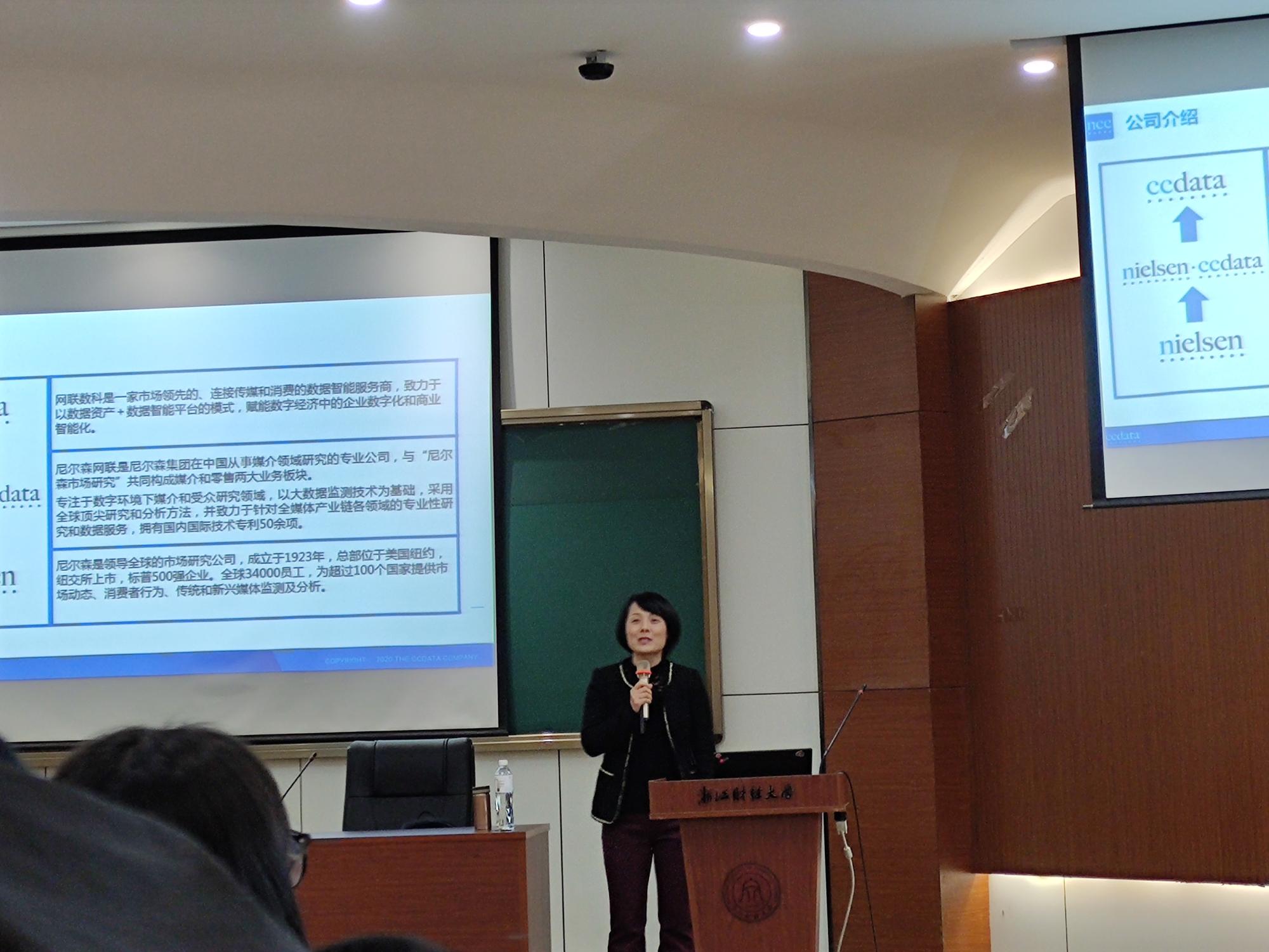 在大数据时代背景下,市场研究越来越需要借助互联网等新兴媒体来获取海量数据,而媒体行业也正逐步走向传统媒体与新媒体融合发展的方向。了解媒体领域的发展动态,以及媒体海量数据的获取及分析,对学生学习市场调研是一个非常重要的补充。2020年11月26日下午,我校尼尔森网联媒体市场大数据应用实践基地特别邀请了中科网联数据科技有限公司(简称“网联数科”)融媒事业部总监,中国杰出经理人徐珍女士为工商嘟嘟成人网