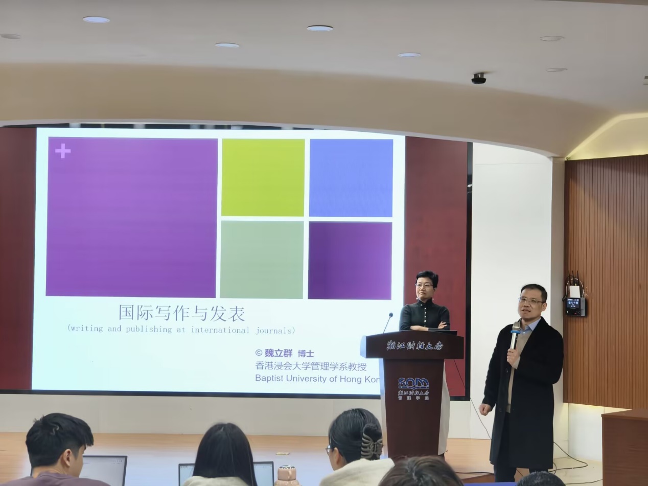 副院长戴维奇教授对魏立群教授的到来表示热烈欢迎。他介绍,魏教授长期聚焦战略人力资源管理、高层管理团队等研究领域,其研究成果多次发表于国际顶级期刊。此次讲座将为学院师生在英文论文写作与发表方面提供重要指引。
