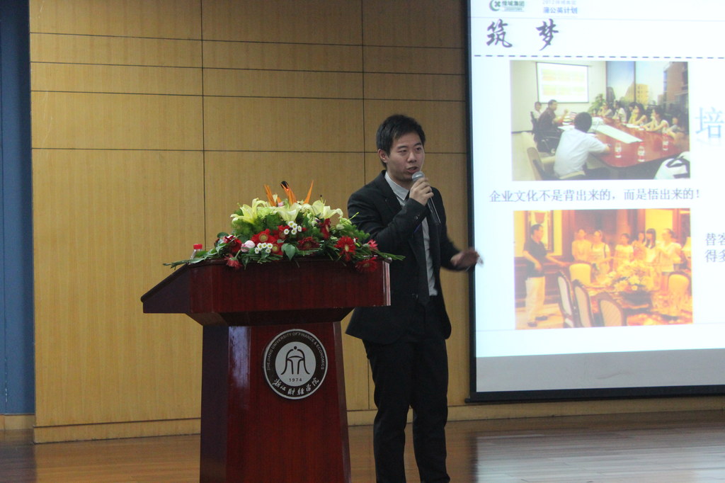 随后的绿城集团推介、“蒲公英计划”宣讲也同样精彩。执行总经理深入浅出的集团介绍让同学们体会绿城“真诚、善意、精致、完美”的核心价值观,上期“蒲公英计划”参与者的切身感受使同学们了解“蒲公英计划”学以致用、适应社会、专业实践的教育体系。同学们都踊跃发言、积极提问。