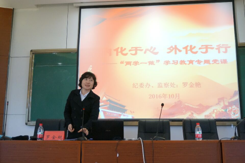 第三讲党课主讲老师纪委办监察处副处长罗金艳老师的主讲主题是“内化于心,外化于行”。在讲课中,老师为我们介绍了两名优秀的学长学姐党员,他们的事迹告诉我们一名如何做一名优秀的共产党员。同时,罗金艳老师还为同学们深入讲解了“两学一做”的内涵和出发点,介绍了党章党规的基本内容。