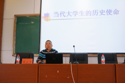 党委书记黄卫华老师的主讲主题是“当代大学生的历史使命”。引用了历代领导人对大学生的厚望之语勉励在座的各位同学。当代的大学生当务之急是完成学业,积极参与到社会实践,为实现中国梦而奋斗。
