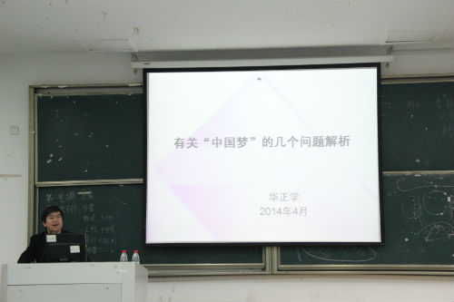 接下来,思政部主任华正学老师为学员们上了首堂党课——“有关“中国梦”的几个问题解析。他就“中国梦”的深刻内涵、由来和发展、政治诉求、实现路径、鲜明特色与学员进行了探讨,说明了“中国梦”乐观自信态度的来源,并阐述了实现“中国梦”的前提、托梦之人、基础、保证和源泉。