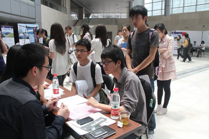 本次招聘会主要针对大二、大三学生,共有近30家企业提供销售、财务、人力资源等多个岗位,其中不乏银联商务有限公司、中国太平洋人寿保险股份有限公司、龙湖地产等知名企业。