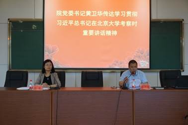 党委理论中心组在学院楼217会议室召开专门扩大会议,集中学习了习近平总书记在北京大学考察时的重要讲话精神。全院教职员工参加学习,会议由学院党委副书记、纪委书记谢敏主持。