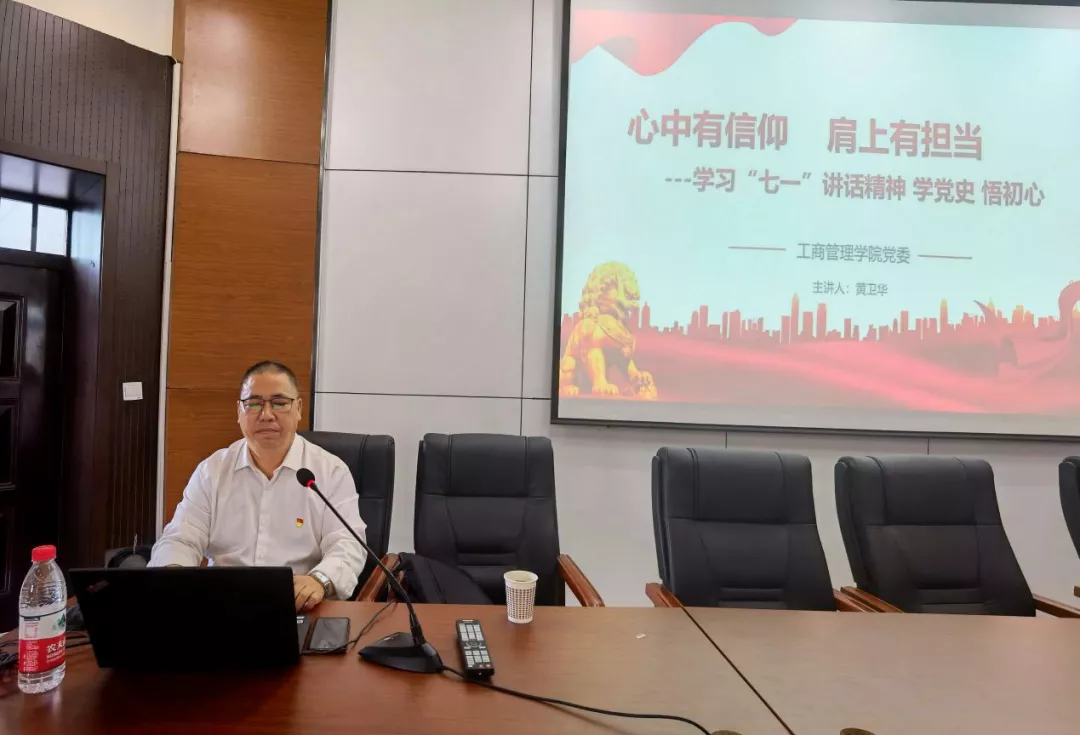 党委书记黄卫华老师和人文学院高燕老师进行授课。黄卫华老师以“心中有信仰,肩上有担当”为主题,意在指引学员们通过学习“七一”讲话精神来了解党史,不忘共产党员们的初心。他首先以习近平总书记在“七一”的重要讲话为引,带领学员们回顾共产党带领人民长期以来艰苦奋斗的光辉历史和伟大成就,领会共产党员们不懈努力的精神气魄。然后他借“九个必须”根本要求强调了“以史为鉴,开创未来”的重要性。最后,他希望大家能积极响应习近平总书记的伟大号召完成“奋进新征程,建功新时代”的目标。