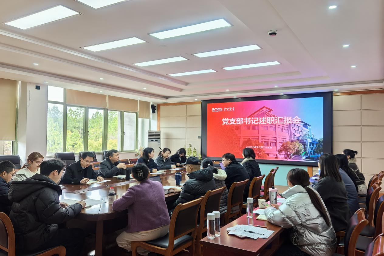 为深入学习贯彻习近平新时代中国特色社会主义思想,全面落实新时代党的建设总要求,切实检验基层党支部工作成效,12月23日下午,学院党委召开2025年度党支部书记述职评议会。学院党委班子成员、各党支部书记参加会议。会议以“党建统领聚合力,实干担当促发展”为主题,通过“现场述职+点评评议”的形式,全面复盘年度党建工作,精准谋划下一步发展方向,推动学院党建与事业发展深度融合、同频共振。