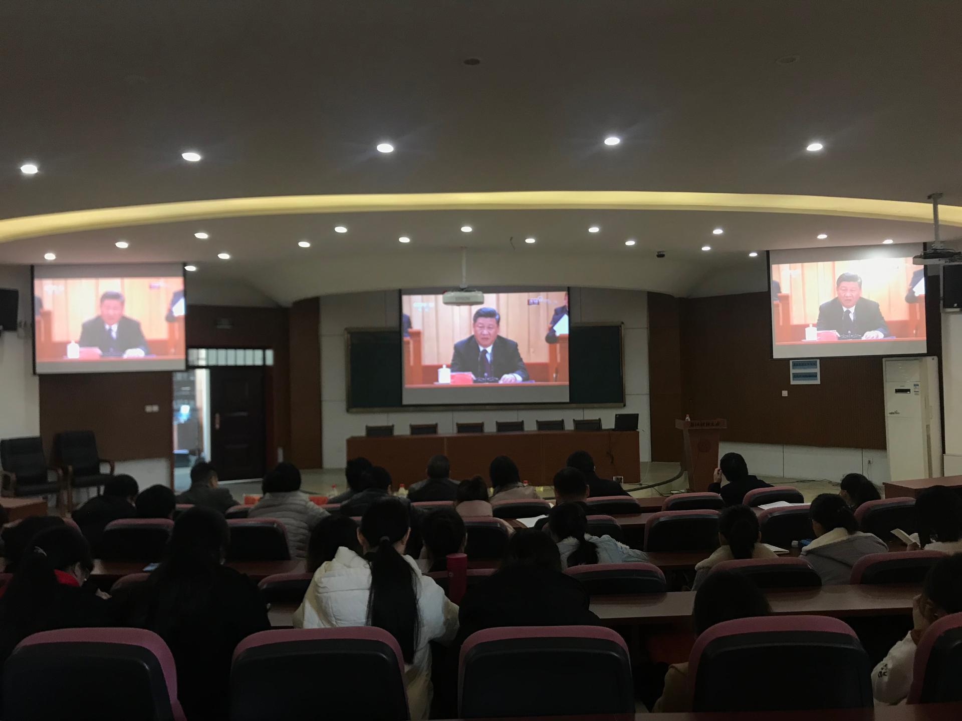 组织全院教职工、学生党员齐聚一堂,在学院楼217会议室观看了庆祝改革开放四十周年大会现场直播。学院党政领导班子全员出席观看。