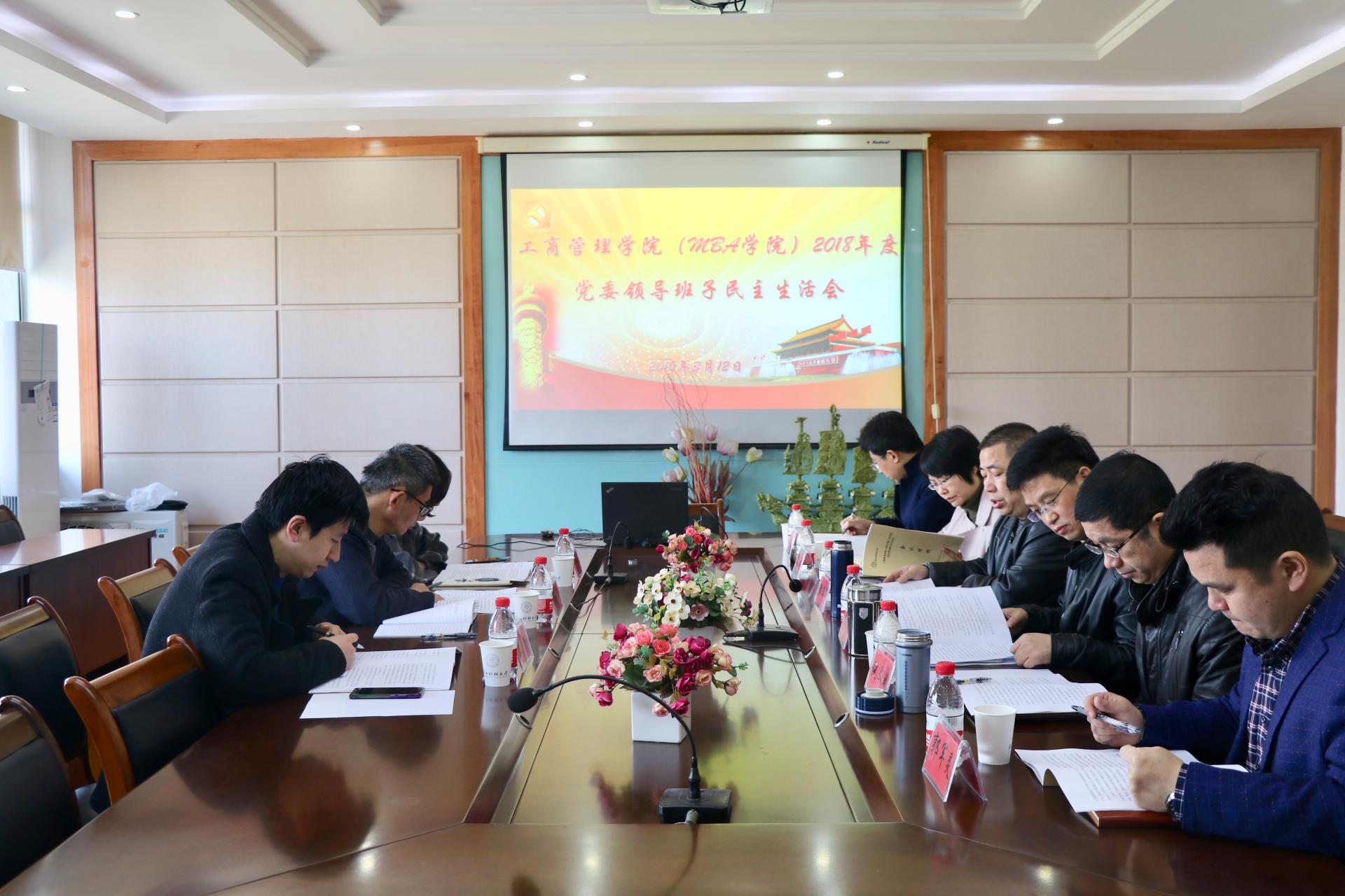 党委于学院楼410会议室召开2018年度党委领导班子民主生活会。学院党委领导班子全体成员参加会议,学校第一督导组组长沈水法,组员林凡、田聪到会指导工作,学院副院长王建明,党委委员、工会主席郭军灵,组织员、支部书记代表周衍彤列席会议。会议由学院党委书记黄卫华主持。