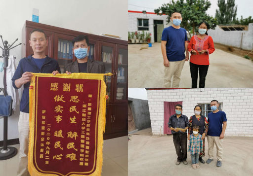 近日,在新疆理工学院(原新疆大学科学技术学院)进行援疆工作的院张雷老师收到萨依买里村村民送来的“感谢状”锦旗,锦旗上写着“思民生、解民难,做实事、暖民心”。