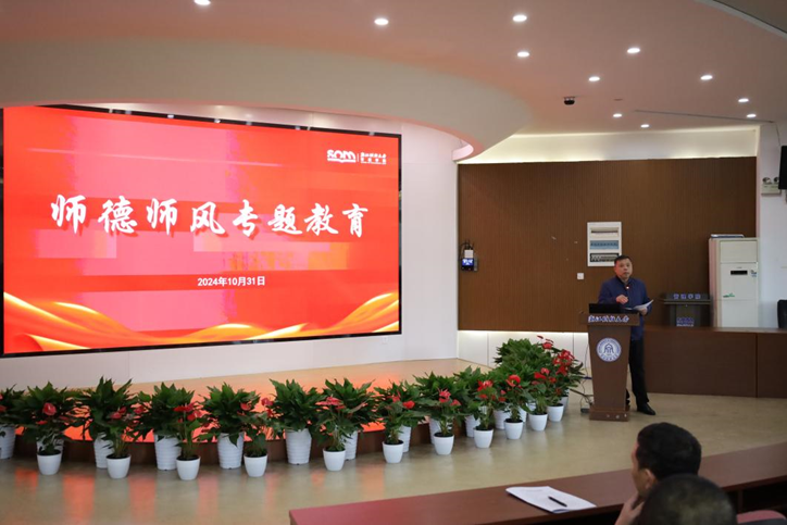 于10月31日13:40在5号楼217报告厅召开师德师风专题教育活动,活动由党委书记朱力明主持。