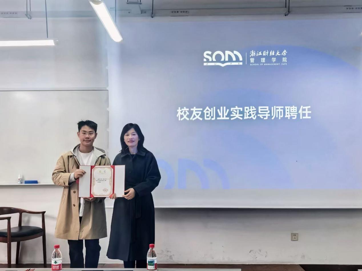 校友创业实践导师——作为在双创领域战绩斐然的优秀学子,余点校友曾斩获中国国际大学生创新大赛国家级金奖,其丰富的参赛经验与扎实的项目孵化能力备受认可。此次聘任既是对余点校友双创成就的高度肯定,更是学院凝聚校友力量、构建“校友传帮带、师生共成长”双创培育生态的关键举措。未来,学院将以此次聘任为纽带,进一步盘活优质校友资源,打造常态化、专业化的双创交流阵地,持续助力学生创新思维提升与孵化项目迭代升级。