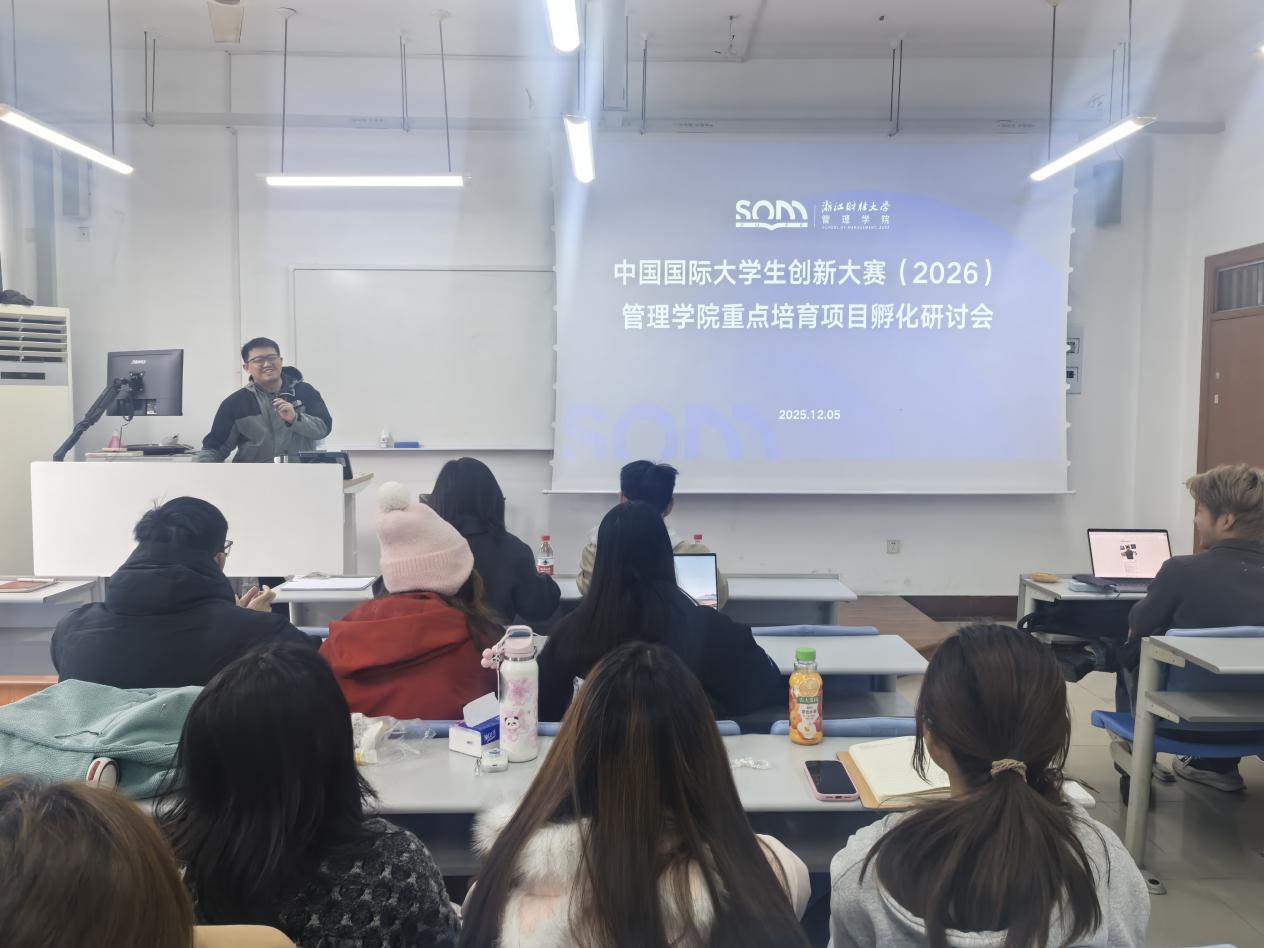 聘任仪式结束后,重点项目孵化研讨会随即拉开帷幕。余点校友结合自身从备赛到夺冠的全流程实战经历,以及多个项目孵化的宝贵心得,为学院重点培育的创新创业项目团队带来了一场干货满满的专题指导。他围绕项目核心定位、创新逻辑梳理、成果呈现优化、商业可持续性构建等关键维度,与各团队展开深度研讨,针对项目现存痛点逐一剖析,并提出了一系列兼具针对性与可操作性的优化方案,助力各项目进一步聚焦真实市场需求、提升落地转化潜力。研讨过程中,参会学生积极互动、踊跃提问,现场思维碰撞激烈,氛围热烈高涨,切实达到了 “以交流促提升、以指导破难题” 的预期效果。