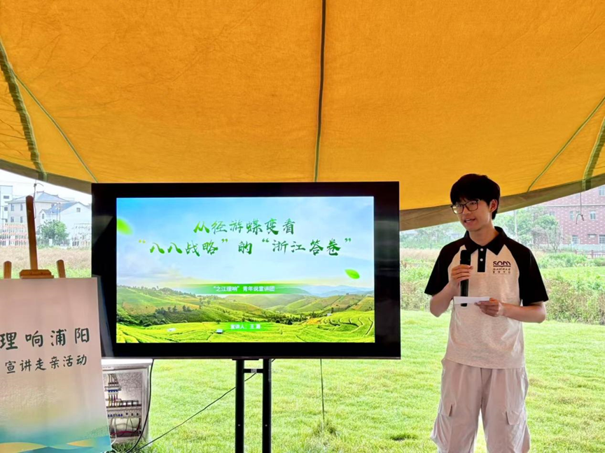 响”青年说宣讲团成员王灏以径游村的产业图、人才图、生态图为切入点,深入剖析了在“八八战略”指引下,径游村如何描绘出乡村振兴与和美的壮丽画卷。他总结道,径游村的华丽蜕变,正是“八八战略”在基层落地生根的生动例证。最后,王灏呼吁青年同学们以“干在实处永无止境”的责任担当,积极投身乡村振兴实践,续写浙江对“八八战略”的精彩答卷。