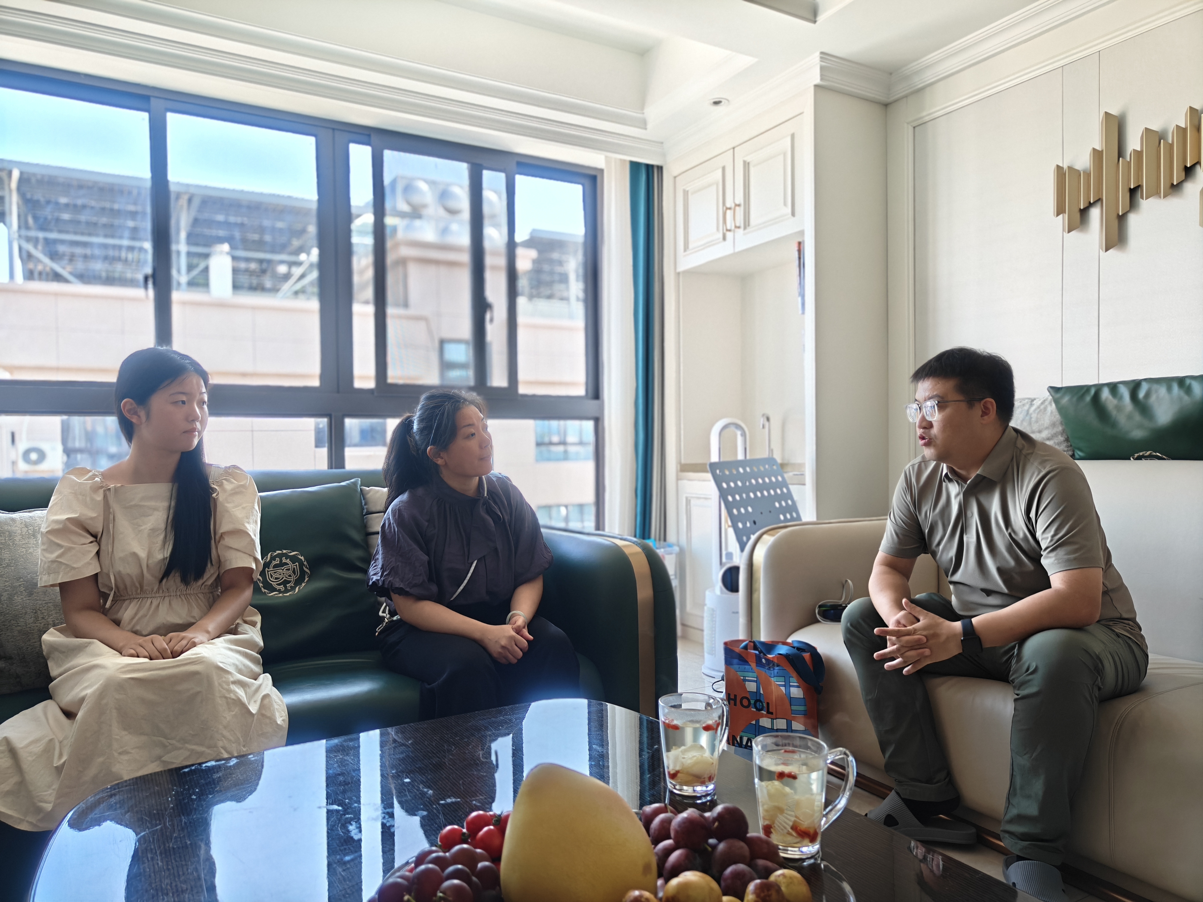 在家访过程中,老师们与学生及家长深入交流,详细了解学生思想动态、假期生活、家庭环境及实际需求,有针对性地开展沟通,程爽书记还为走访学生贴心送上精美的学院文创周边。对于2025 级新生,程书记重点强调大学阶段的转折意义:“学院会从学习资源、生活关怀、专业引导、心理疏导等方面全力支持你们,帮助快速适应大学生活。”他同时叮嘱新生,提前做好学业规划,积极参与实践活动,在锻炼综合能力的同时,保持积极心态,为未来发展打牢基础。针对老生,老师们结合其在校表现,与家长、学生共同剖析学业或发展中的问题。对学业困难学生,辅导员协助制定个性化职业生涯规划,明确学习目标与方法;朱力明书记鼓励老生:“要在挫折中磨砺意志,合理利用假期巩固专业知识、参与社会实践,全面提升综合素质。”