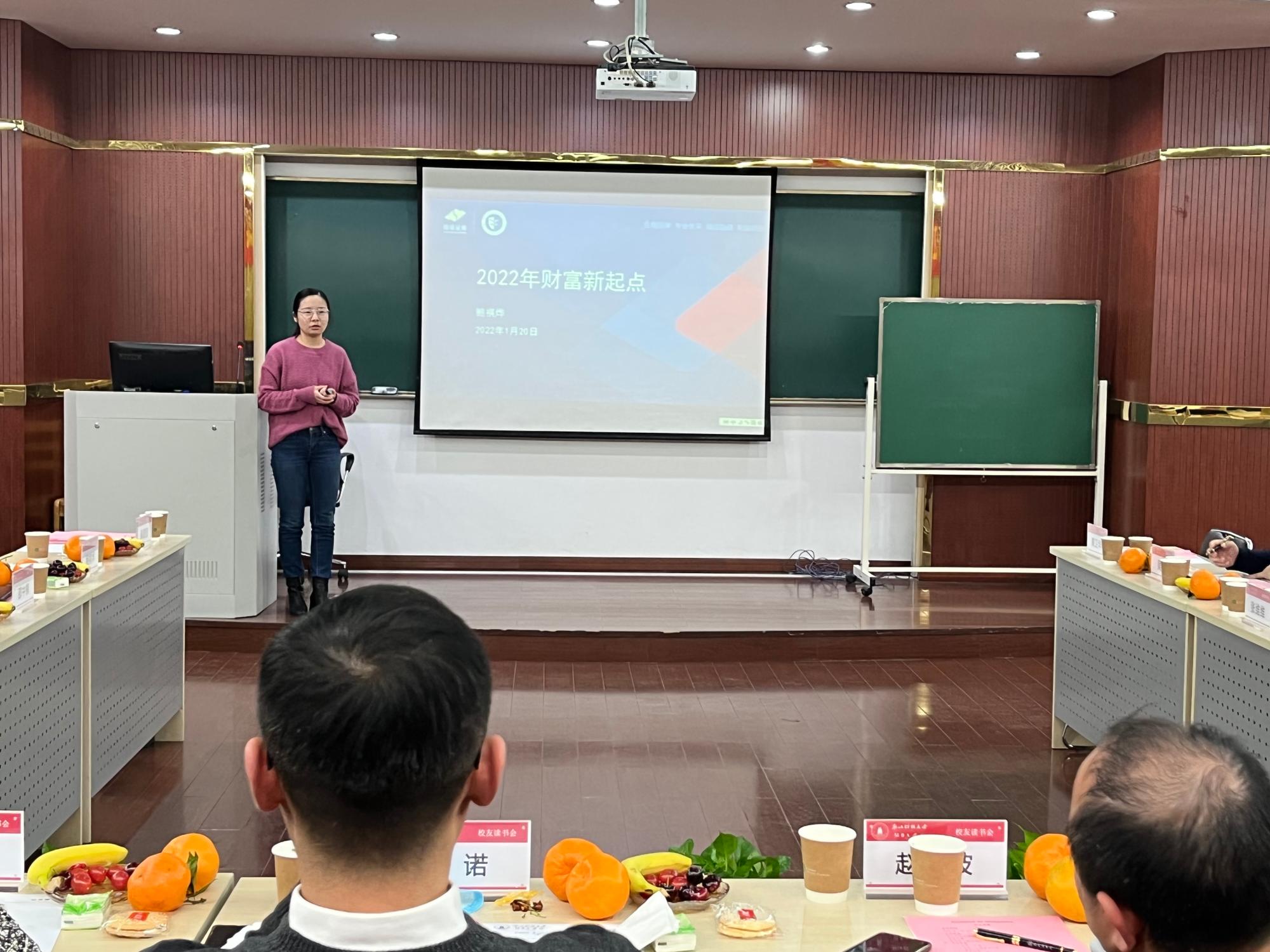 会议伊始,主持人介绍了校友读书会成立的学习场、能量场、交流场的初衷和本次读书会的参会人员。吴玻副书记代表学院向读书会的成立表示祝贺,并希望通过读书会这个平台,增进校友与校友之间、校友与母校之间的交流和合作,相互促进、共同进步。2013级MBA校友邵中祺和鲍祺烨作为分享嘉宾,分别分享了“回不去的2019--浅析后疫情时代的经济现象及投资路径”和“2022我们可以做点啥---从二级市场角度分析当下投资逻辑和方法”两个主题,与会的每一位校友就分享的两个主题和校友工作进行了交流和发言。