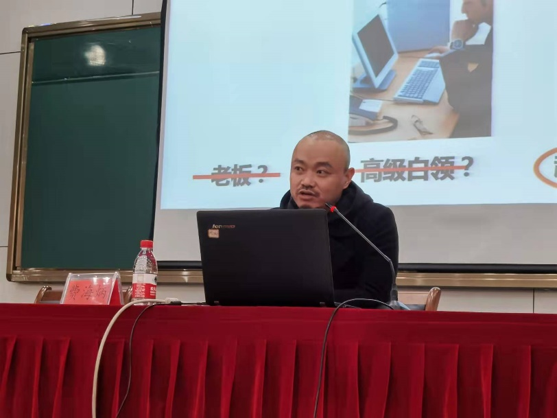 为了让21级工商管理类的同学们更好的了解工商管理类专业,做出明确的职业规划,增强学习工商管理类专业的兴趣,11月30日下午,学院于217报告厅举行了“优秀校友报告会”。学院党委副书记吴玻,03届工商管理专业优秀校友,杭州永卓电子商务有限公司董事长费海炳,学工办主任胡星平,21级工商管理类全体学生出席报告会。