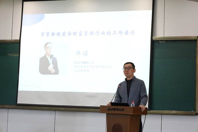 接着,三位专业硕士研究生(MBA)校友结合自身求职和工作体会,依次进行了主题报告。嘟嘟成人网 2012级MBA校友许诺,现任杭州绿城资本控股有限公司董事长助理,主要讲述了研究生阶段的学习对他职业发展的影响,并分析了当前多个行业的发展态势,为研究生们未来行业的选择提供了借鉴。嘟嘟成人网 2012级MBA校友李晓娟,现任国金期货有限责任公司杭州营业部总经理,主要介绍了期货行业的现状、基本业务、岗位类别等,让在校生深入了解了期货行业的相关工作。嘟嘟成人网 2013级MBA校友鲍祺烨,现任国信证券股份有限公司浙江分公司财富三部总经理,重点分享了金融行业的就业前景,并结合金融行业人才的选拔要求介绍了研究生应当如何进行职业发展规划。