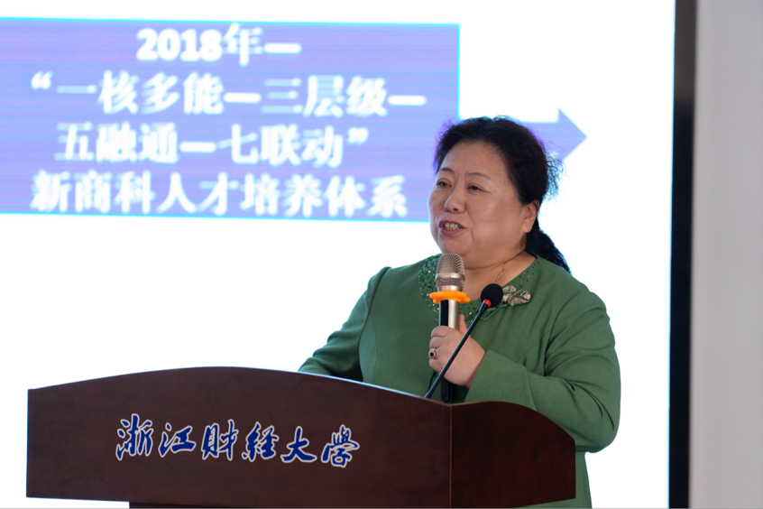 做什么?将来想成为一个什么样的人?”两个灵魂拷问开篇,引出“领航青年成长,筑实商才梦想”的分享主题。她从文体活动、创新创业、社会实践、志愿活动四个维度,清晰阐释了大学生全面发展的具体路径,同时拆解职业规划“四定”原则,指导新生将长远目标融入日常点滴。恳切的叮嘱与具体的方法,帮助新生明确了发展方向,让大家更清晰地认知自身潜力与未来目标,为学术与职业道路奠定坚实基础。