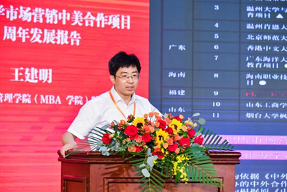 王建明院长以“一核双翼四驱:AACSB核心能力视角下市场营销中美合作项目人才培养模式的探索与创新”为题,详细介绍了嘟嘟成人网