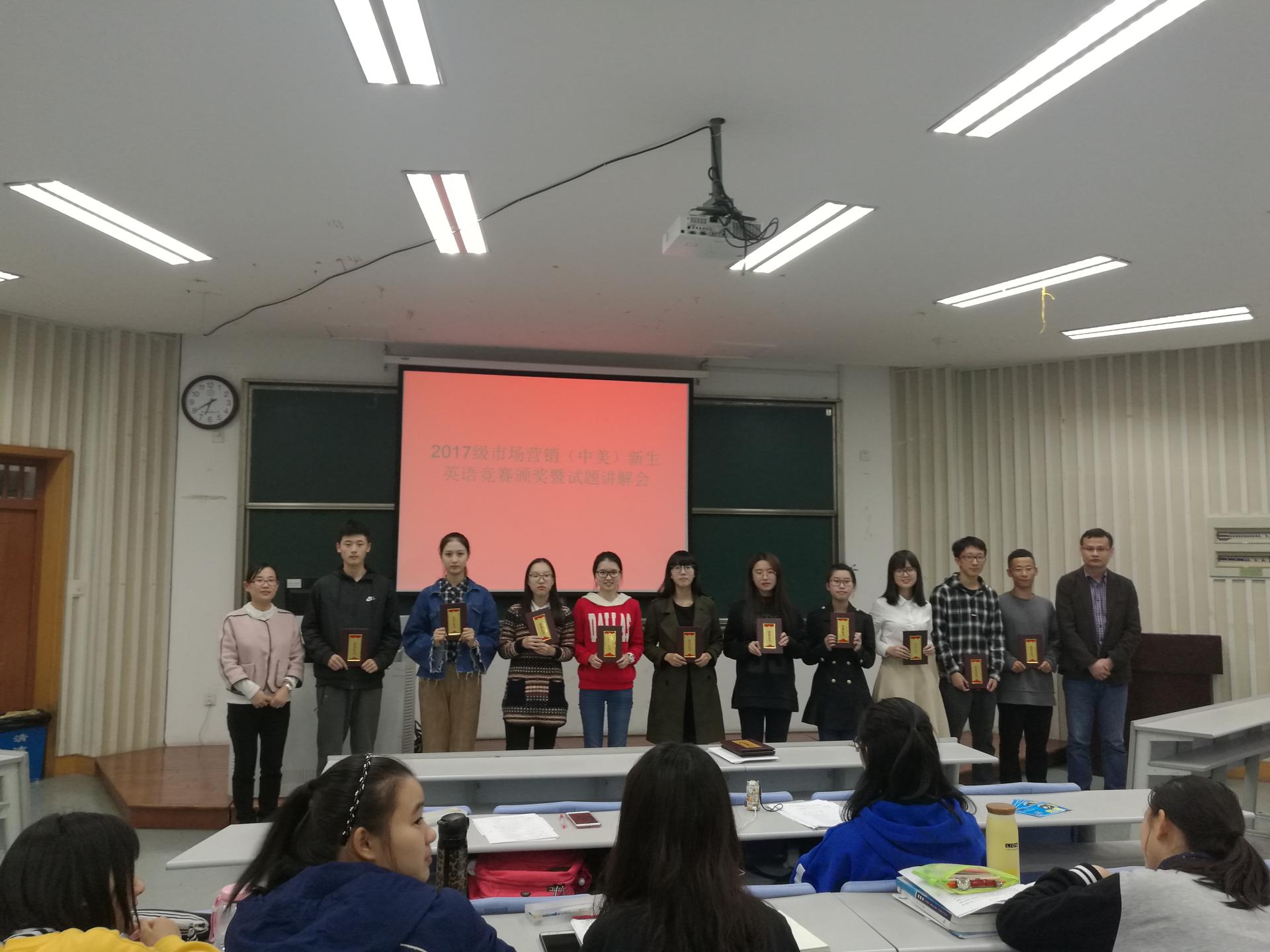 2017年11月8号晚6点半,2017级市场营销(中美)新生英语竞赛颁奖会及试题讲解会在学院楼115教室顺利举行。工商嘟嘟成人网