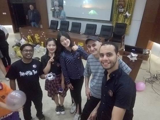 楼217会议室,举行了市场营销(中美)《英美文化》期末课程展示《Mask Party》。国际学院副院长李汉强教授、工商学院副院长王建明教授、口语老师Erik、赵昶老师、郭军灵老师、孔小磊老师、高友江老师、周衍彤老师,以及我校部分留学生出席了本次聚会。