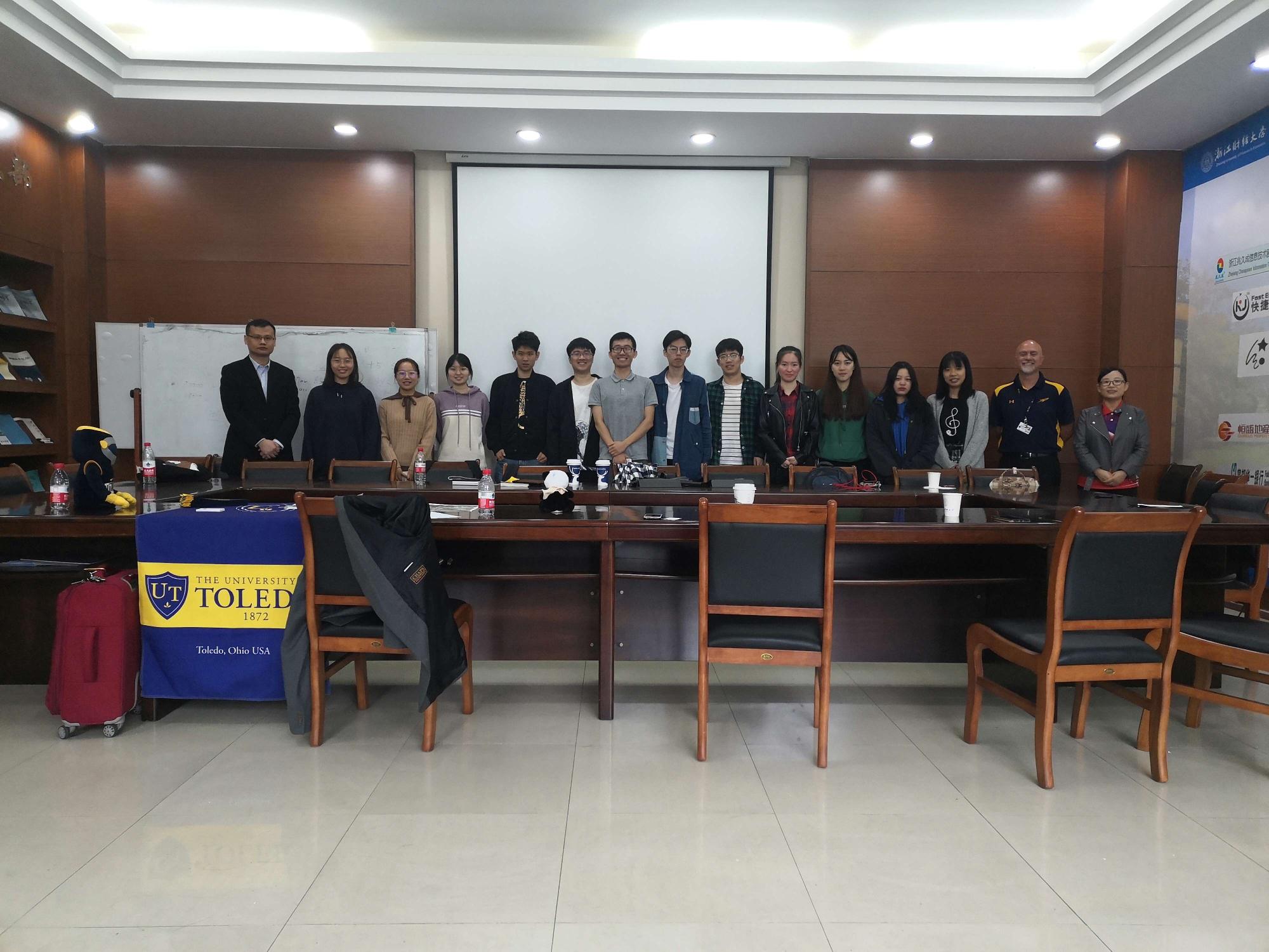 在5号楼218举办了2017级市营(中美)学生赴UT学习交流。会议由中美项目的中方负责人孔小磊老师主持,托莱多大学国际处Joe Guziolek,、辅导员梁磊老师以及13名2017级中美赴托莱多大学的同学参加。