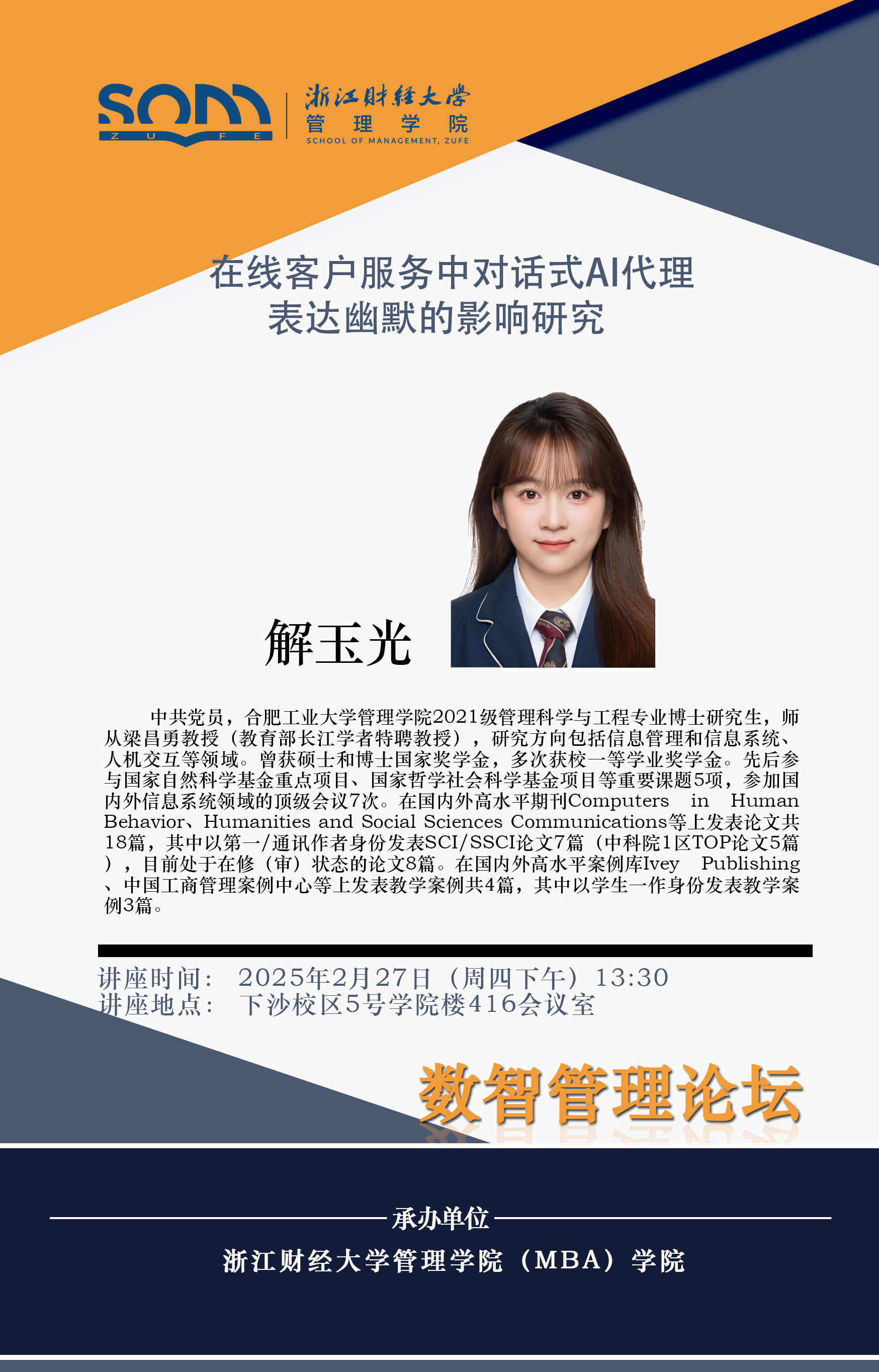讲座题目:在线客户服务中对话式AI代理表达幽默的影响研究