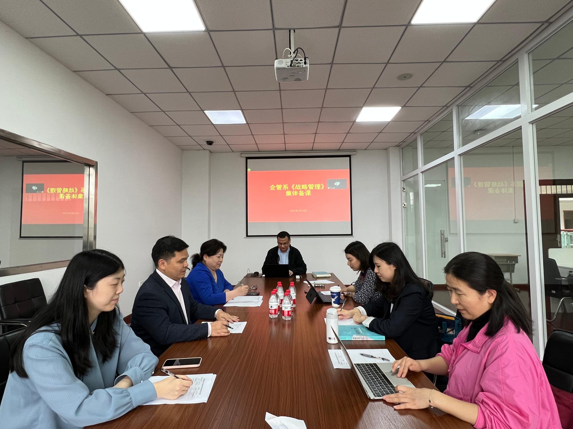 5月10日下午学院5511,企业管理系《战略管理》课程组开展线上线下同步集体备课活动。本次活动旨在探讨新时代情景下混合课程建设,促进授课老师之间的交流。课程组分享教学经验,讨论在线课程建设和教学设计。集体备课活动由系主任吴丽民主持,沈渊、孔小磊、俞萍萍、应瑛、赵雨菡等老师(线下),以及王珊珊、黄纯、周丹等老师(线上)参与备课活动,院督导组长郭军灵老师,教学办赵红老师参加了本次活动。