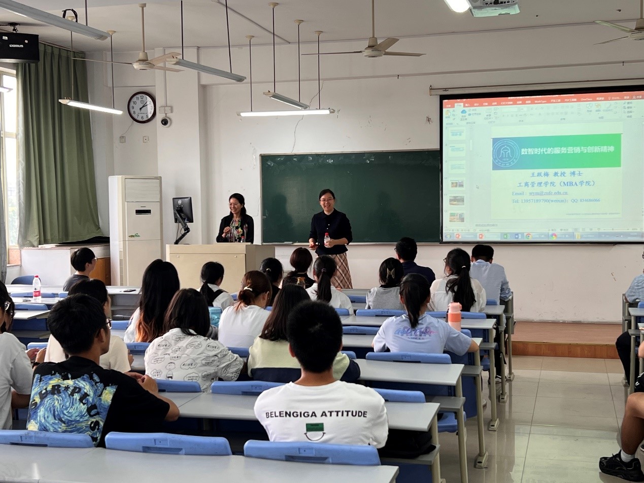 接着,市场营销系特别邀请王跃梅教授为新生做了专业且生动的始业教育报告《数智化时代的服务营销与创新精神》。王老师深入浅出、诙谐幽默的报告风格赢得了阵阵掌声。