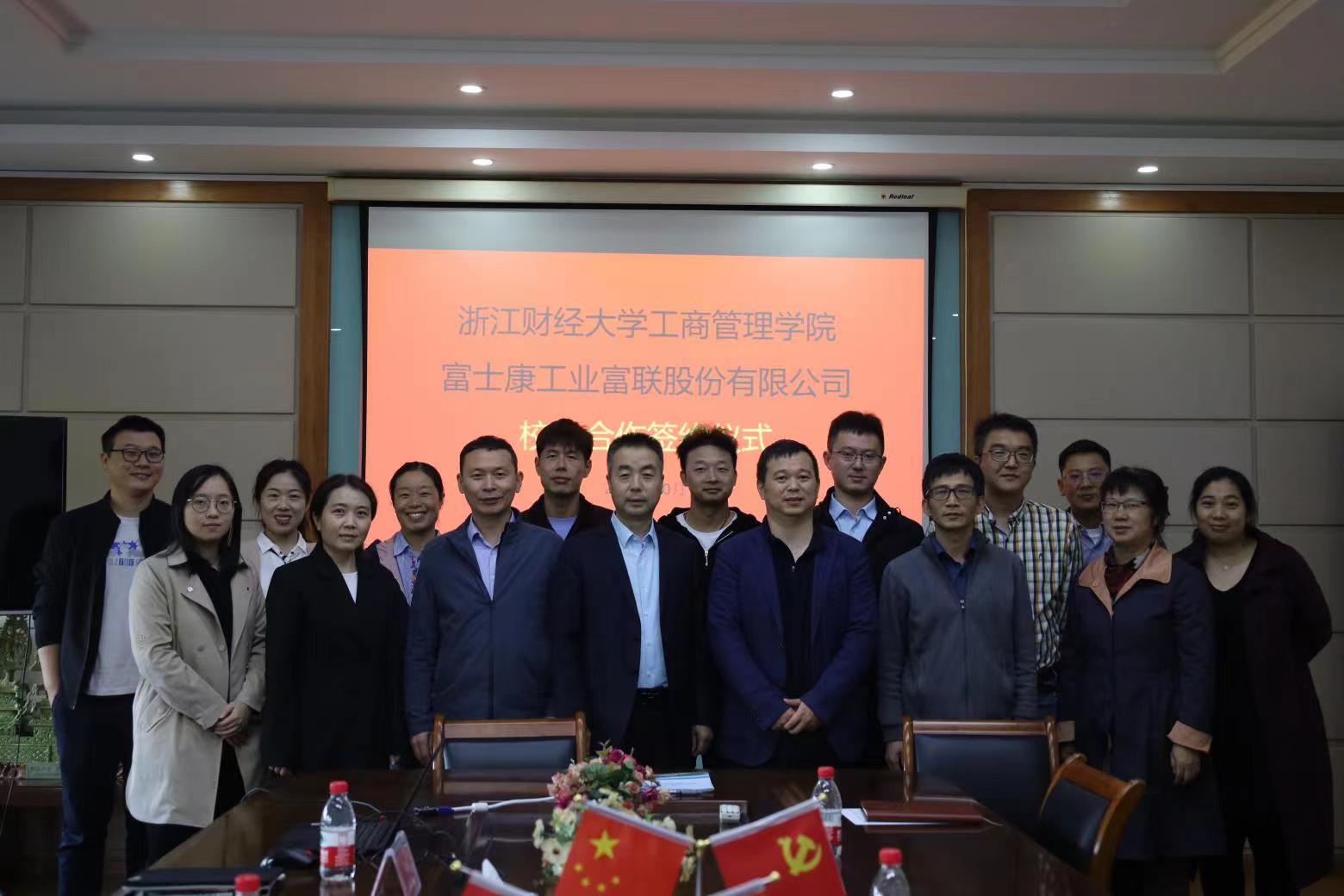 党委副书记吴玻主持,副院长张雷、供应链管理系主任田家欣及系里所有教师,富士康工业富联股份有限公司杭州公司总经理,浙江省电子学会智能制造专委会秘书长刘金钰,供应链管理处处长姚娜等出席签约仪式。
