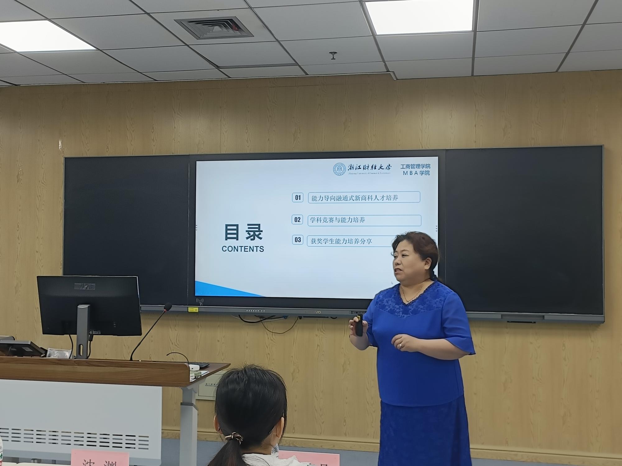 随后,班主任应瑛教授从两个角度阐述了她的心得。一方面通过学姐的简历启发同学们该如何学习,提升自我,增加竞争优势;另一方面以学生竞赛案例为引子,触发学生的内心力量:健康积极的心态以及再出发的勇气是大学生面对挫折时必备的能力。