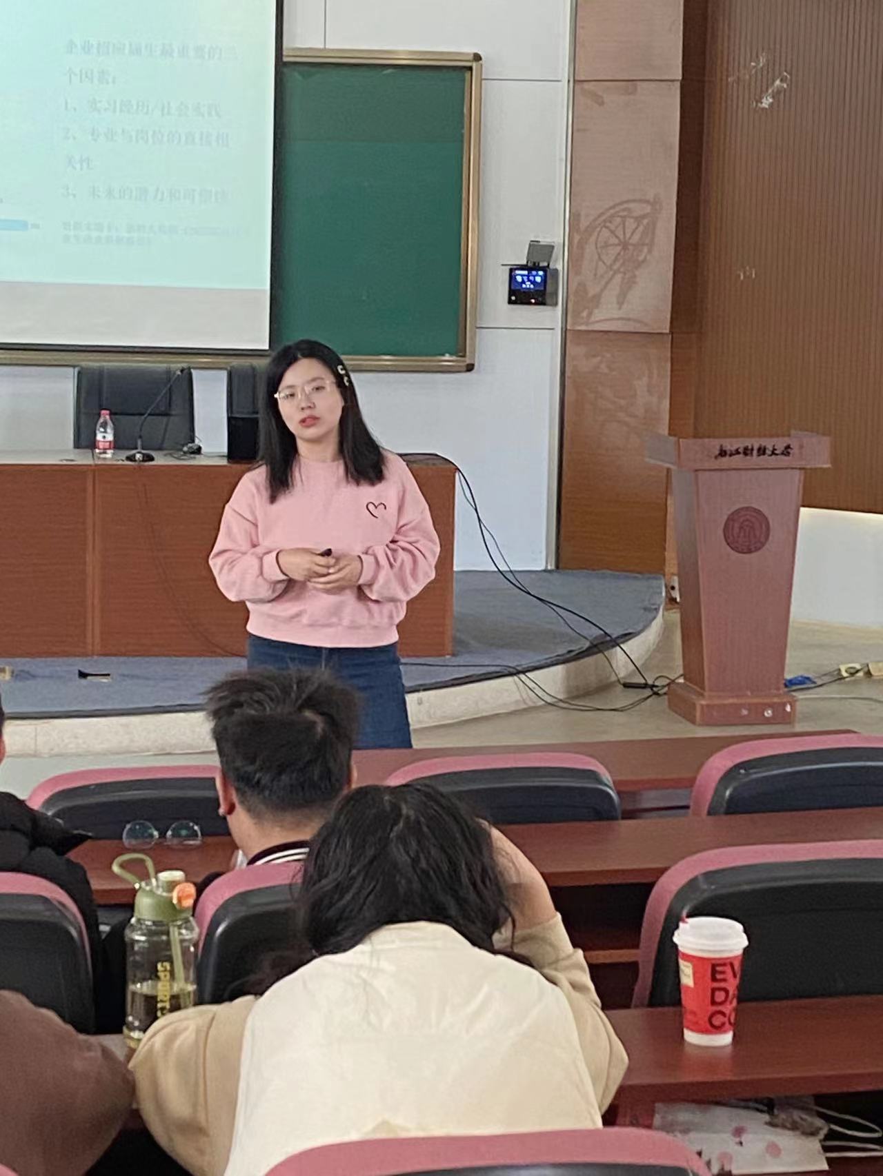 本科四年和研究生两年半的学习生活,分享了自己如何从高中毕业的小白逐步成长为具有就业竞争力的求职者。其次,以自我认知为切入点,指导学弟学妹如何认识自己的优缺点,并结合个人实际进行职业生涯规划。最后,学姐讲述了自己备考公务员事业单位的经历,鼓励大家提前做好职业生涯规划,扎实为未来就业做准备。
