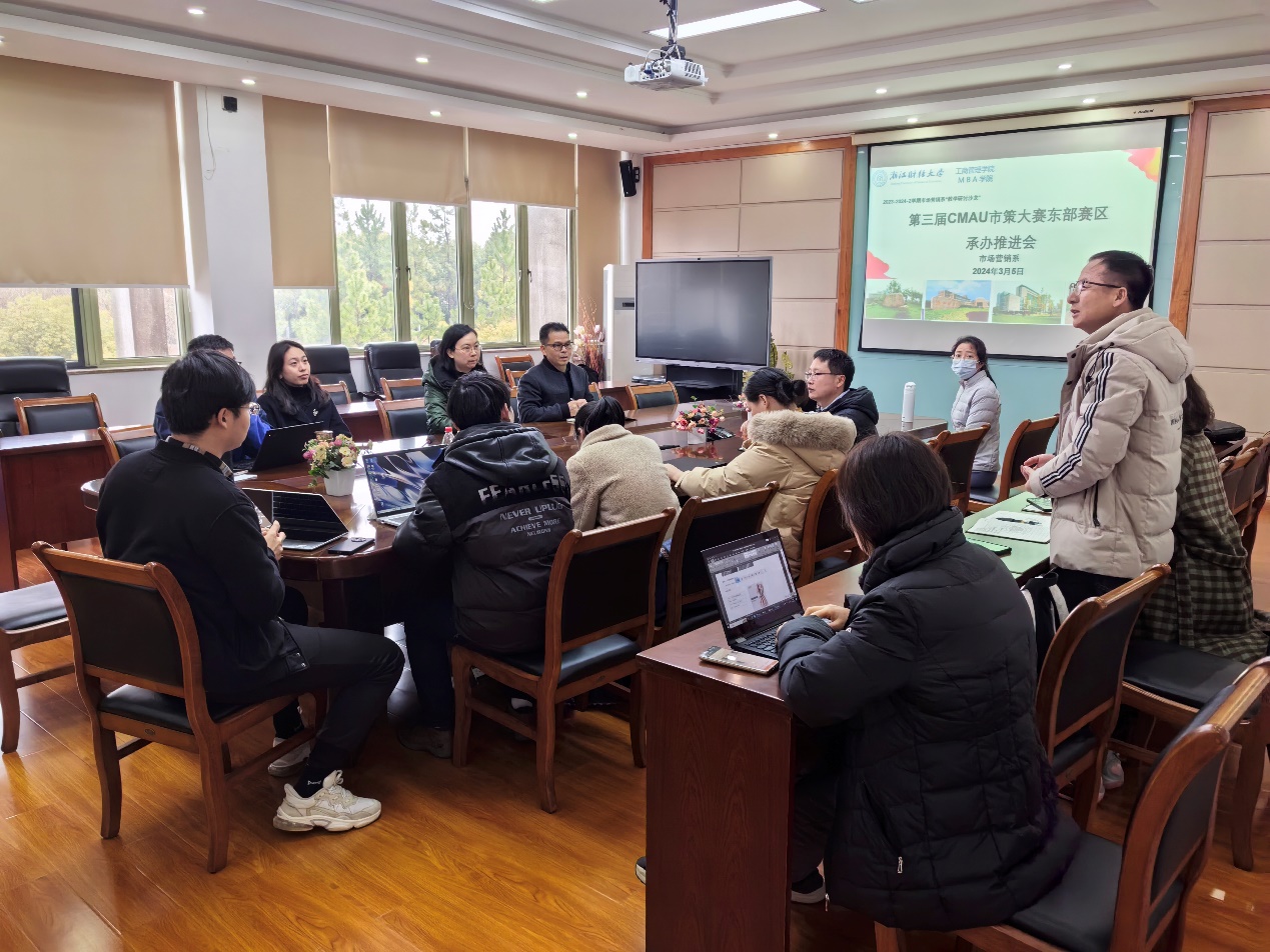 2024年3月5日,市场营销系以“第三届CMAU市策大赛东部赛区承办推进会”为主题举行系部会议。本次会议还邀请李晓锦老师和高键老师做大赛的相关情况报告,市场营销系全体老师列席本次会议。