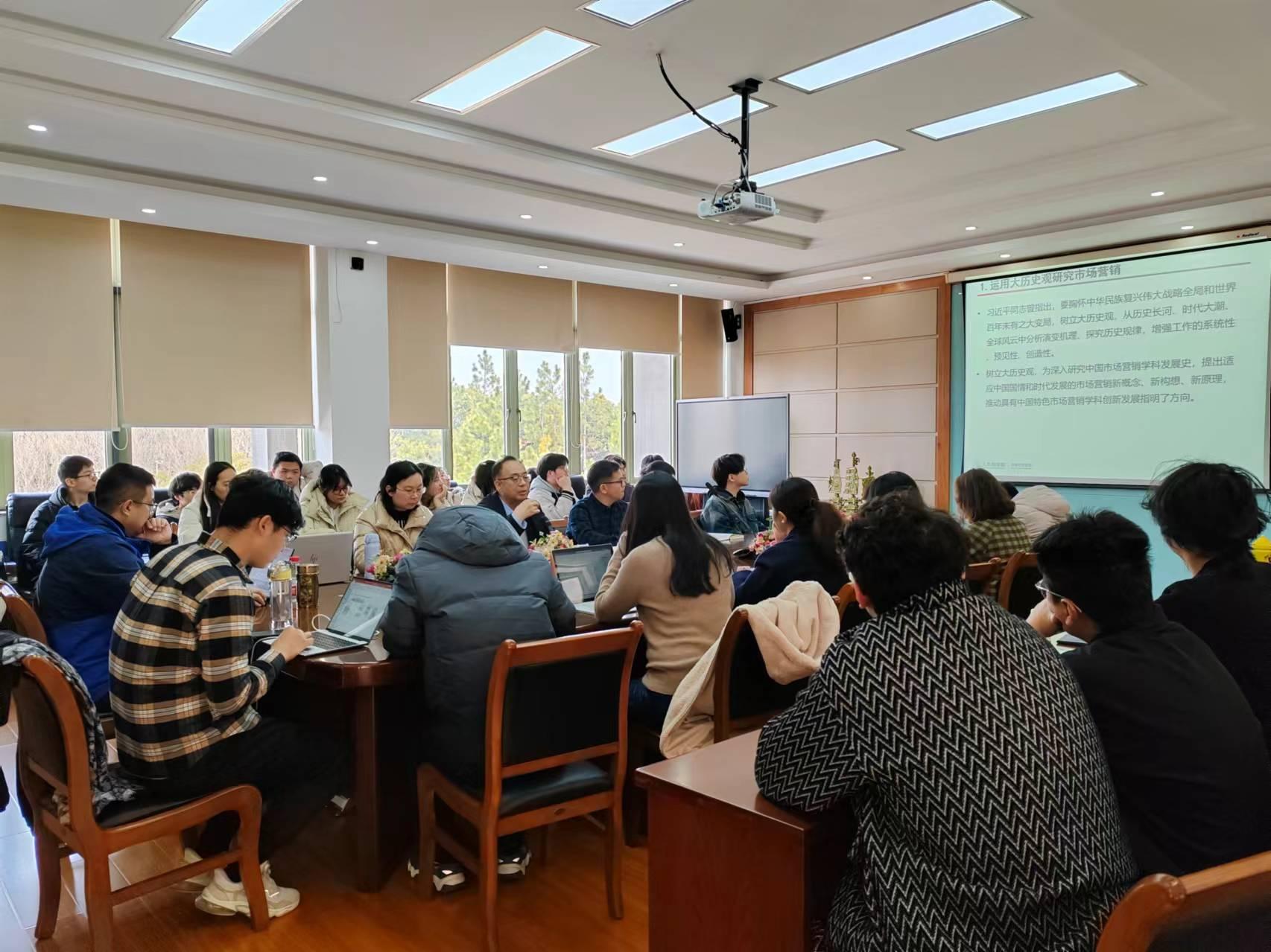 市场营销系举办了一场主题为“营销理论的最新发展——基于思想史的视角”的教学研讨沙龙。本次沙龙隆重邀请到营销领域知名学者、中国人民大学商学院教授、中国市场营销研究中心主任、博士生导师郭国庆进行了主题报告,市场营销系三十余位师生参与,本次沙龙活动由市场营销系主任陈颖主持。