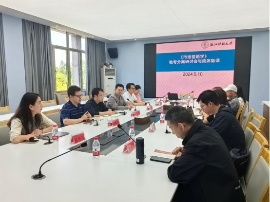 楼416会议室顺利召开《市场营销学》课程教学研讨会。本次课程研讨会主题为:教考分离与《市场营销学》集体备课。规划《市场营销学》课程教考分离行动方案和集体备课将教考分离落到实处。本次课程研讨会旨在响应学校的“新财经战略”中的新培养体系建设。推进学校教育教学管理改革,完善教学管理制度,客观、公平、公正地评价教学效果,更好地发挥考试有效检验和提升教学质量的杠杆作用,提高本科教学水平和人才培养质量。研讨会邀请了浙江树人大学嘟嘟成人网