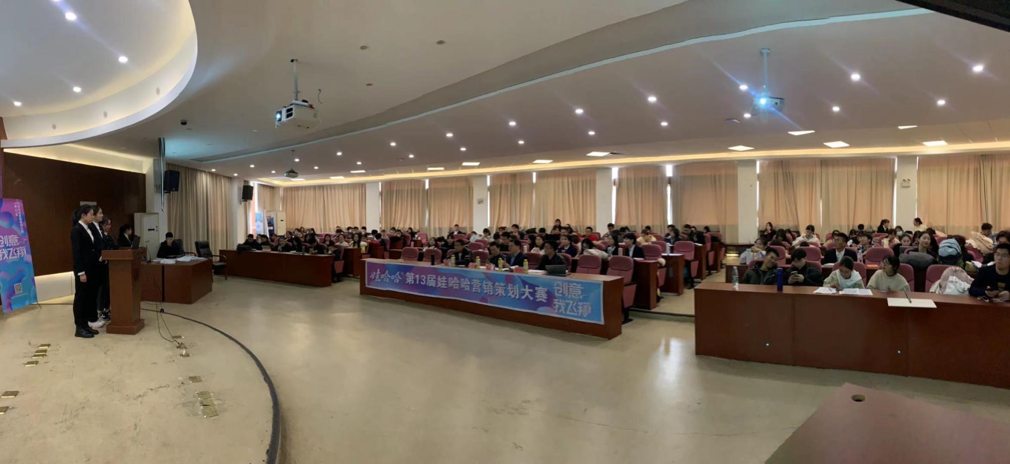楼217成功举行,本届大学生营销策划大赛圆满落幕。本届娃哈哈大学生营销大赛历时一个半月,共计有61支队伍、350余位学生参加,参赛规模创造了新的记录。市场营销协会邀请了物流管理系赵广华教授、市场营销系郭军灵副教授、高友江博士和娃哈哈集团杭州区域营销总监王伟先生担任评委。