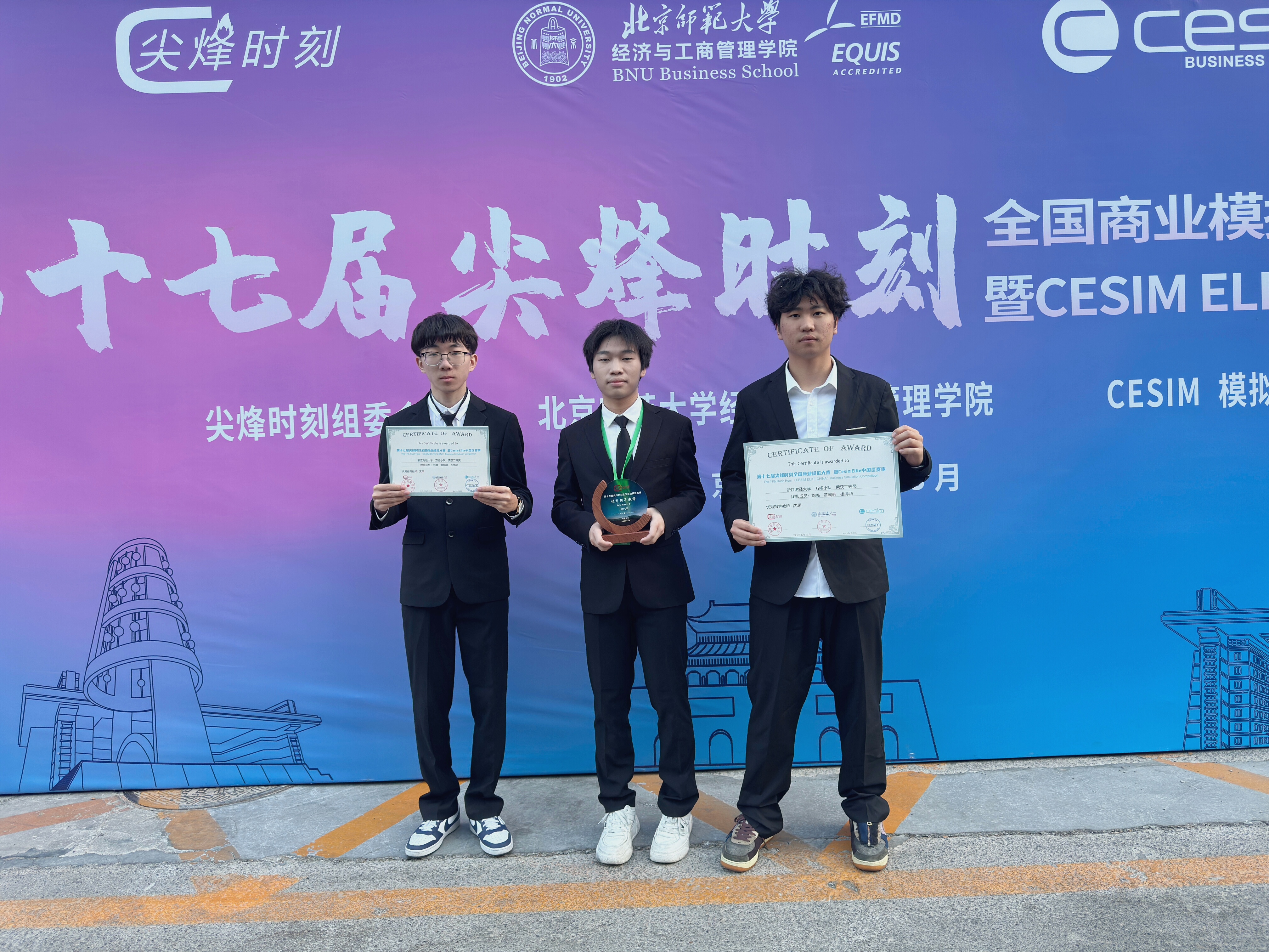 的MBA队伍“火太阳队”(成员:杨凡、潘一萍、钱懿,指导老师:林与川)和本科生队伍“万能小队”(成员:刘强、相博涵、章朝韩,指导老师:沈渊)凭借出色表现,顺利通过英语团队介绍、软件模拟比赛、商业案例演示等多个环节的考验,最终在全国总决赛中脱颖而出,分别荣获MBA组一等奖和本科组二等奖。