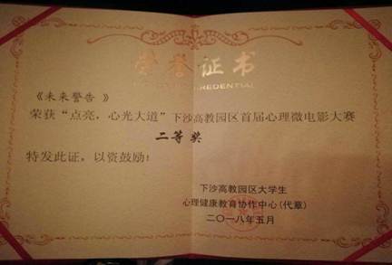 “获得本次‘点亮,心光大道’下沙高教园区心理微电影大赛二等奖的有,来自嘟嘟成人网