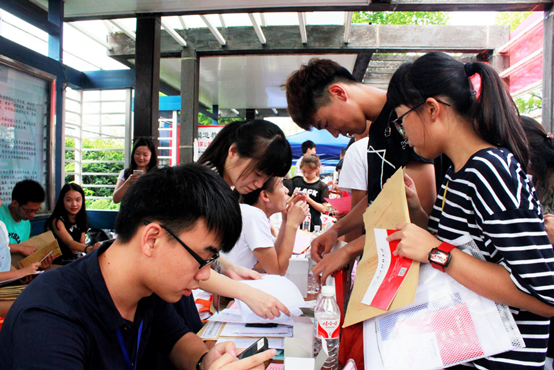 在此次迎新工作中,工作人员分配无间,配合有序地引领新生完成报道的所有程序。学院团委学生会的成员按照会议中的布置安排,帮助新生按照顺序缴费,办理手续,引领新生入住寝室;工商志愿者们也早已在各个路段微笑着守候新生的到来,用热情的服务接待来自全国的学子们,为他们介绍校内的建筑物、生活设施,积极帮助新生担负行李,热诚地指引他们去往寝室。与此同时,学院领导和带班辅导员老师来到文化长廊现场为新生家长解答疑惑。