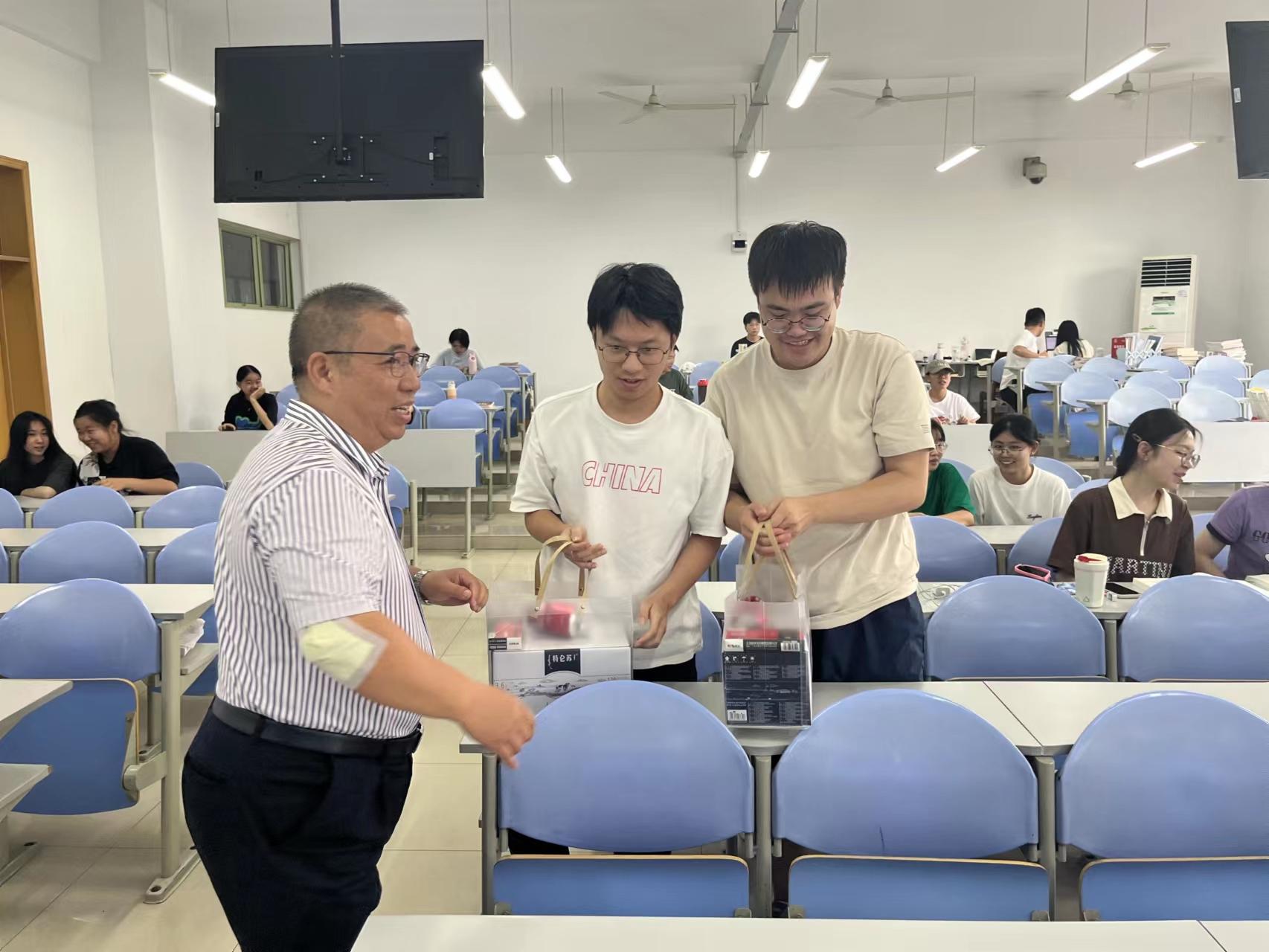 活动最后,学院领导为同学们送上了慰问礼包,表达了对同学们的鼓励和期盼。同学们也纷纷表示带着这份饱含谆谆教诲和殷切期盼的“加油包”,一定会坚持不懈,再接再厉,取得更优异的成绩,为学院添一份光彩。