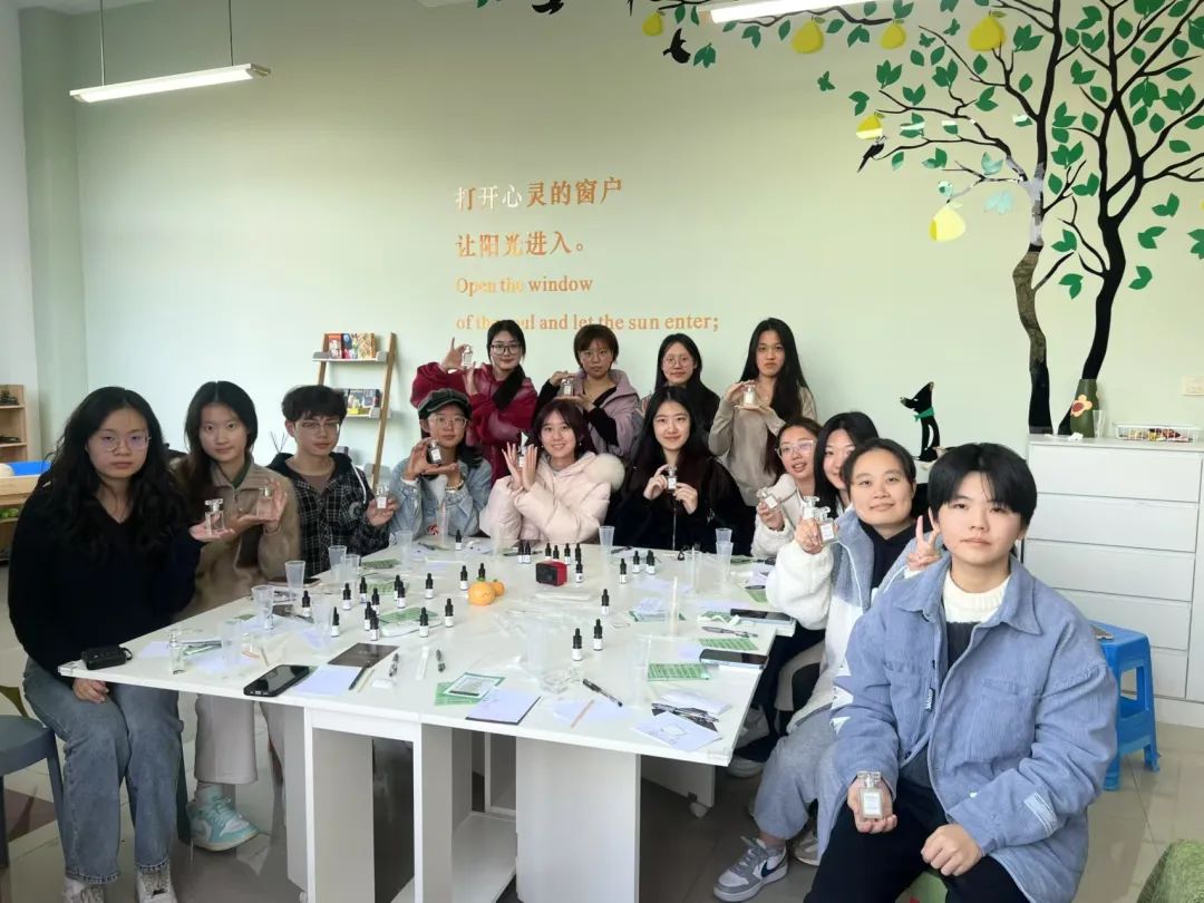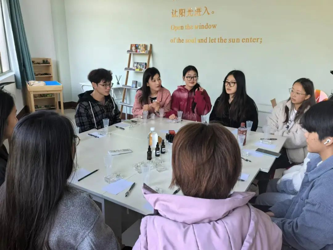 308室如火如荼地展开。学院党委副书记陈小芳、心理辅导员周依凡、心理部干事以及部分同学参加了此次活动。在这场活动中,同学们通过闻香体验、正念冥想、制作香水等一系列过程,舒缓情绪,放松身心,以最自然的疗愈方式,缓解学习和生活带来的焦虑和悲伤,重新找回内心的平静与平衡。