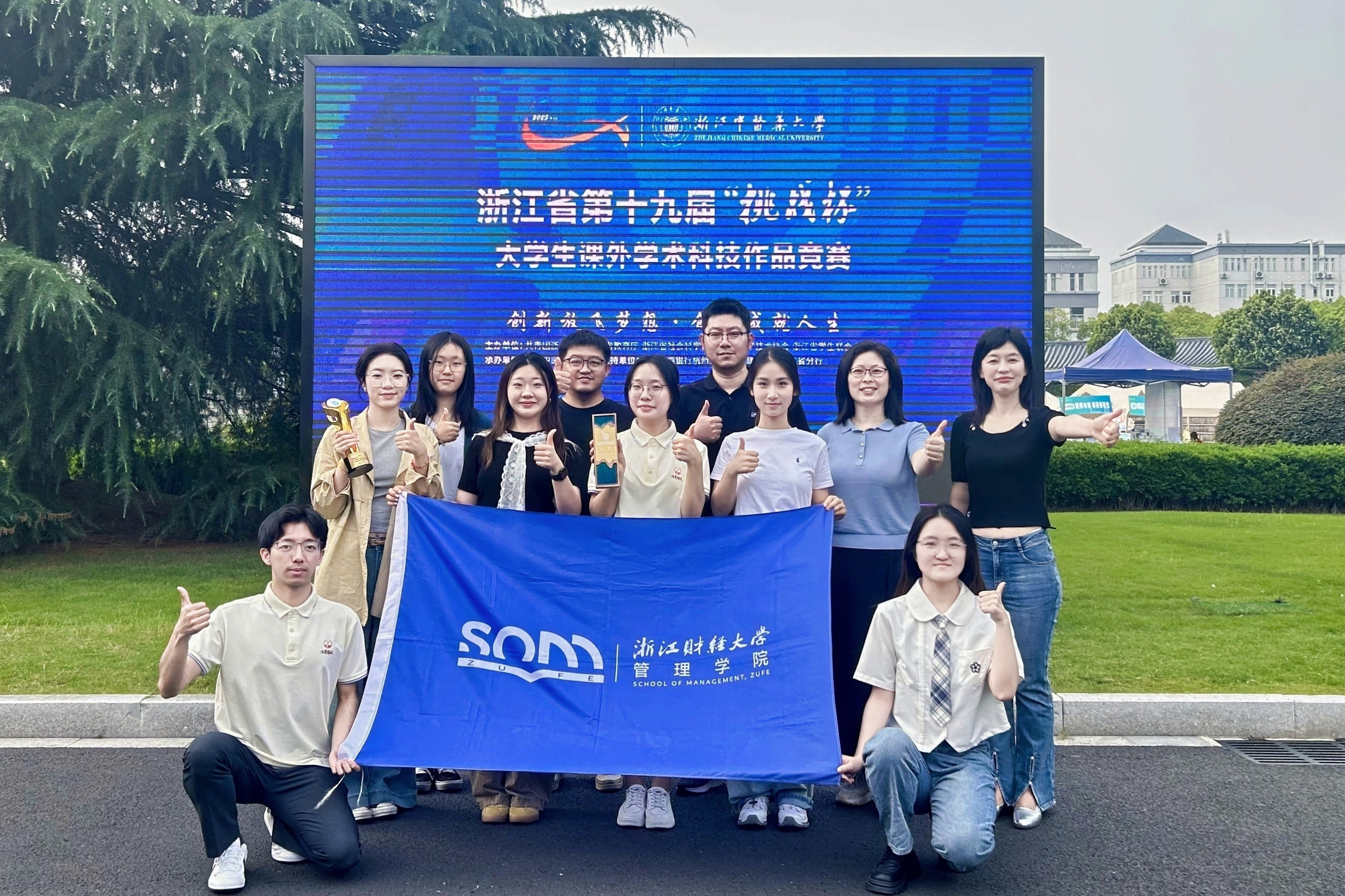 团队表现优异,最终《端好中国饭碗:耕地下山、果林上山的浙江实践与经验——基于浙江省9个地级市1629村田野调查数据的分析》、《“输血”到“造血”:消费帮扶巩固脱贫攻坚成果模式创新与实践——基于浙江杭州精准帮扶63区县的实证研究》获主体赛金奖,《“两山”的回响,跨越20年的“浙”里青年答卷——基于浙江11地市参与乡村振兴的1024名青年的调研》获红色专项金奖,《守望乡村:设计赋能三生空间推动和美乡村建设——以浙江177个艺术乡村调查和16个特色村实践为例》获省级银奖(马克思主义学院和嘟嘟成人网
