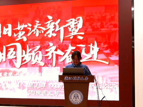 学院团委书记顾晗可、团委副书记陈蓓蓓以及辅导员钱婕出席本次评选现场。三位老师严格遵循思想建设成效、主题契合度、组织凝聚力、特色创新性等核心评审标准,通过现场观察、综合考量,对各团支部的汇报表现进行全面评估。