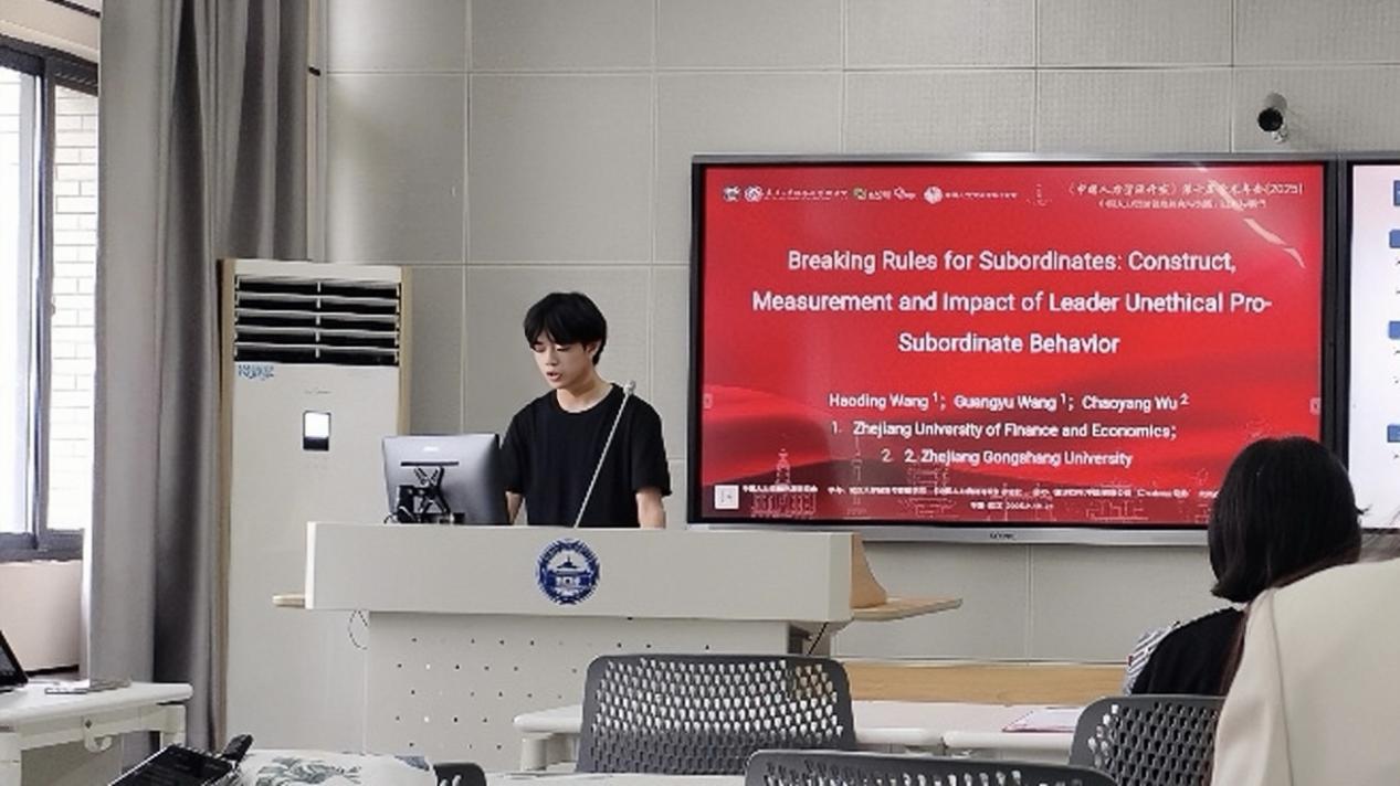 2024级研究生汪光宇与导师董进才教授、王浩丁老师合作的论文《Breaking Rules for Subordinates: Construct, Measurement, and Impact of Leader Unethical Pro-Subordinate Behavior》受邀在年会上进行了论文汇报。