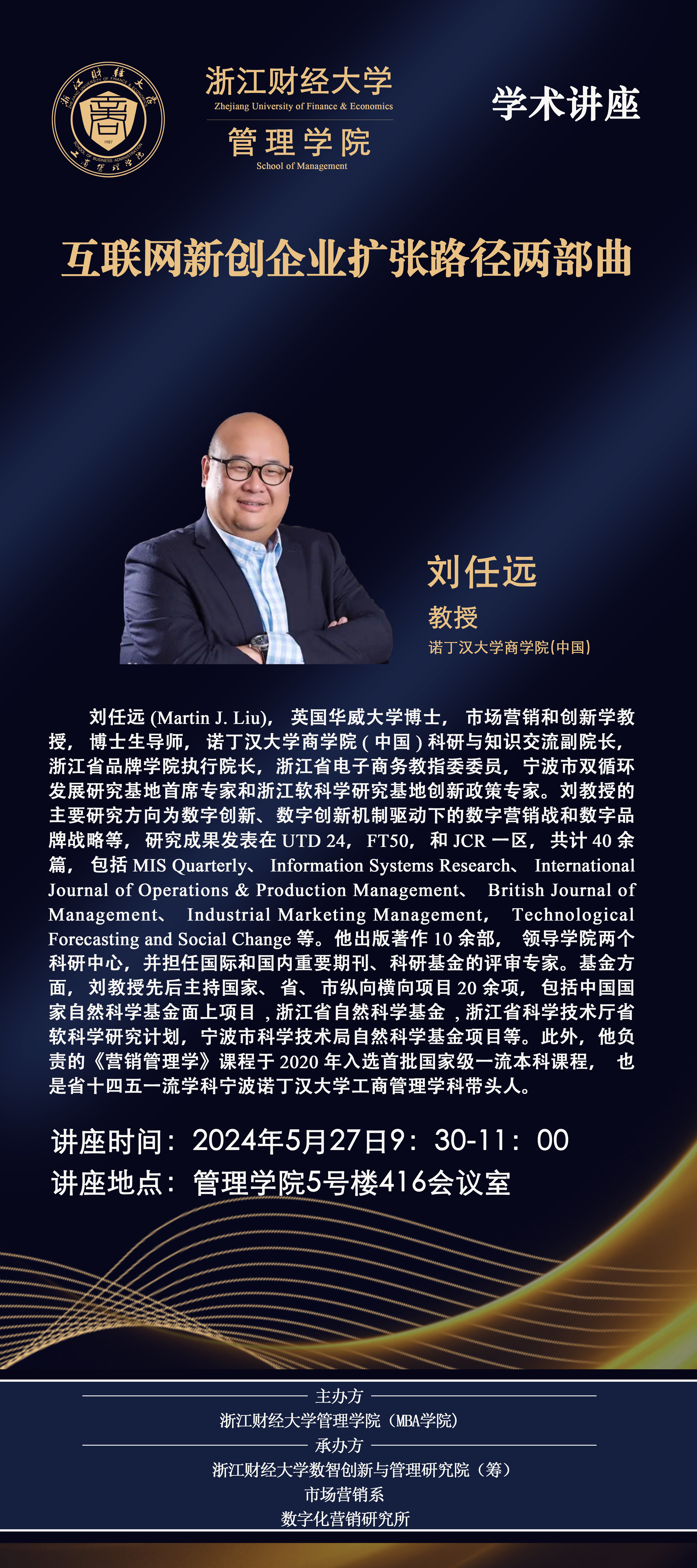 【讲座预告】刘任远教授:互联网新创企业扩张路径两部曲