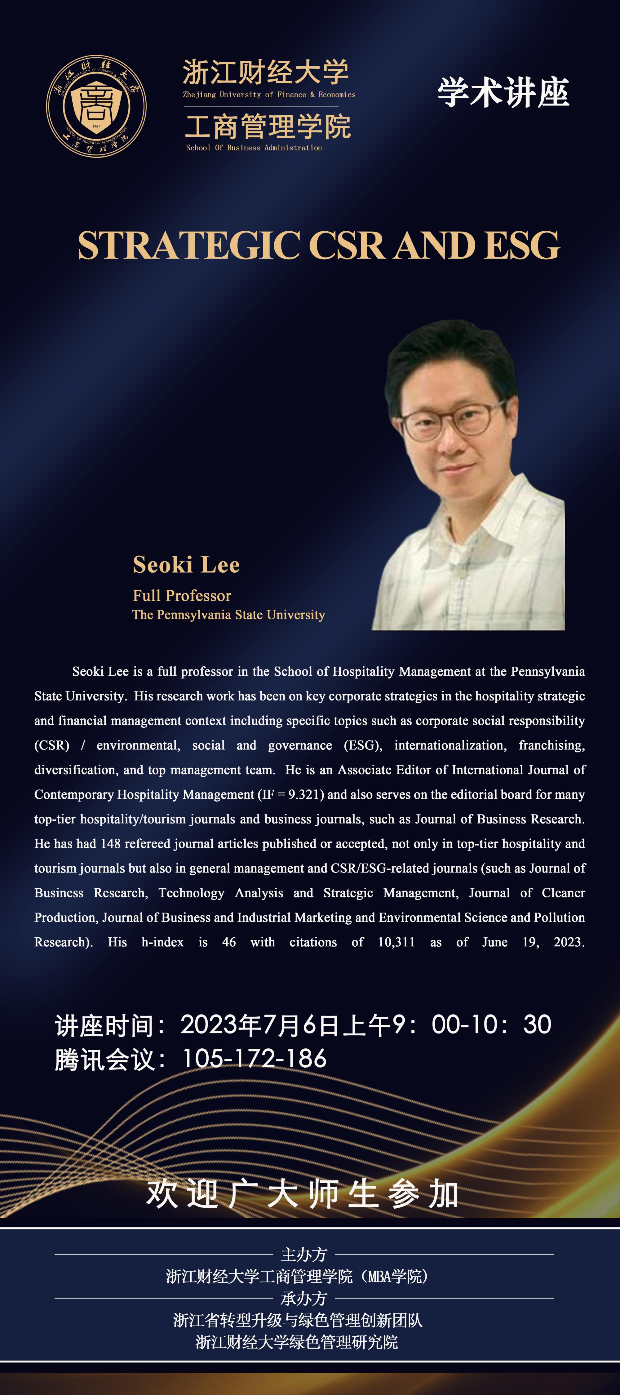 【讲座预告】Professor Seoki Lee: Strategic CSR and ESG