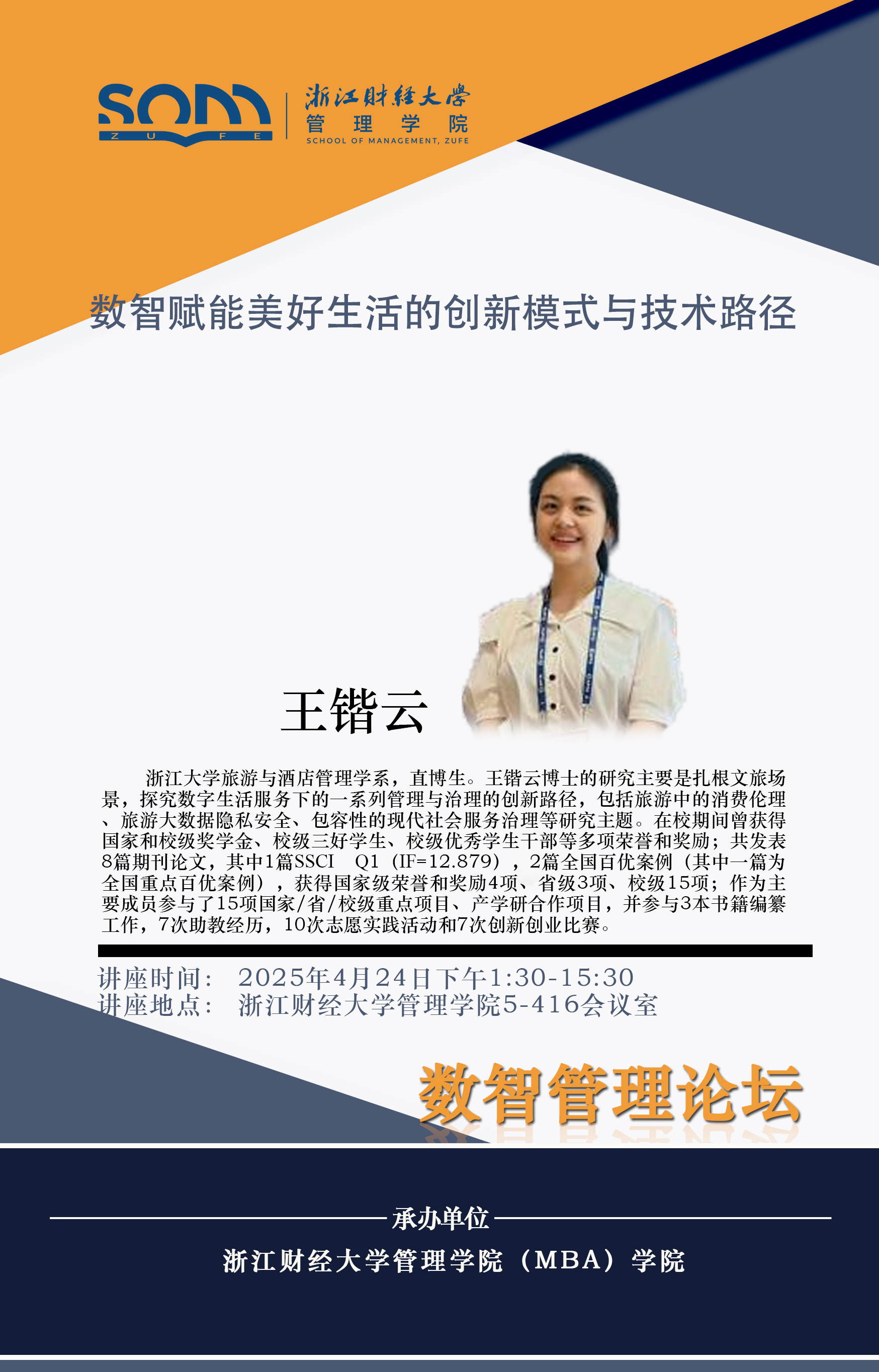 嘟嘟成人网 新财经战略系列学术活动2025年第18期【学术报告】王锴云:数智赋能美好生活的创新模式与技术路径