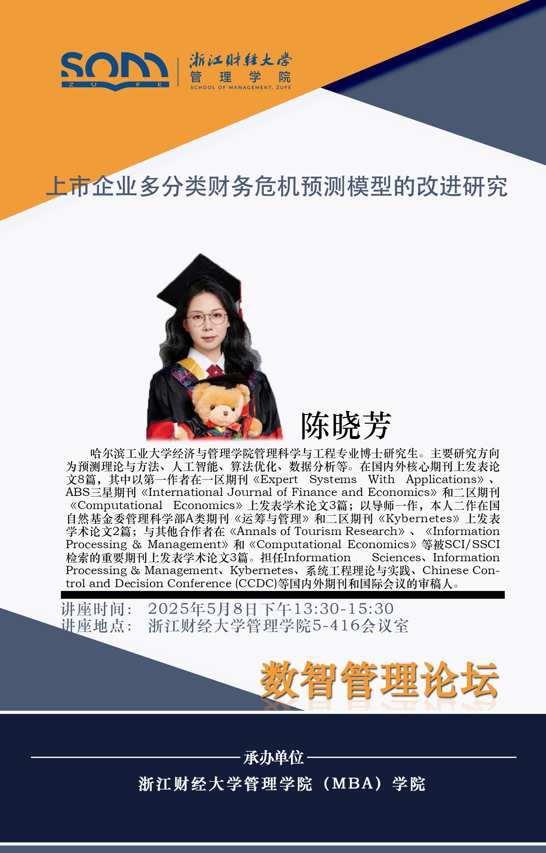 嘟嘟成人网 新财经战略系列学术活动2025年第27期【学术报告】陈晓芳:上市企业多分类财务危机预测模型的改进研究